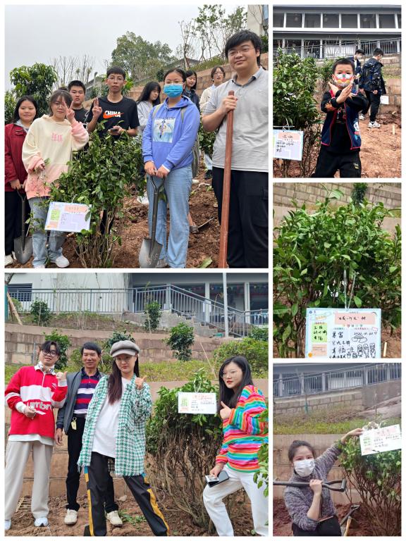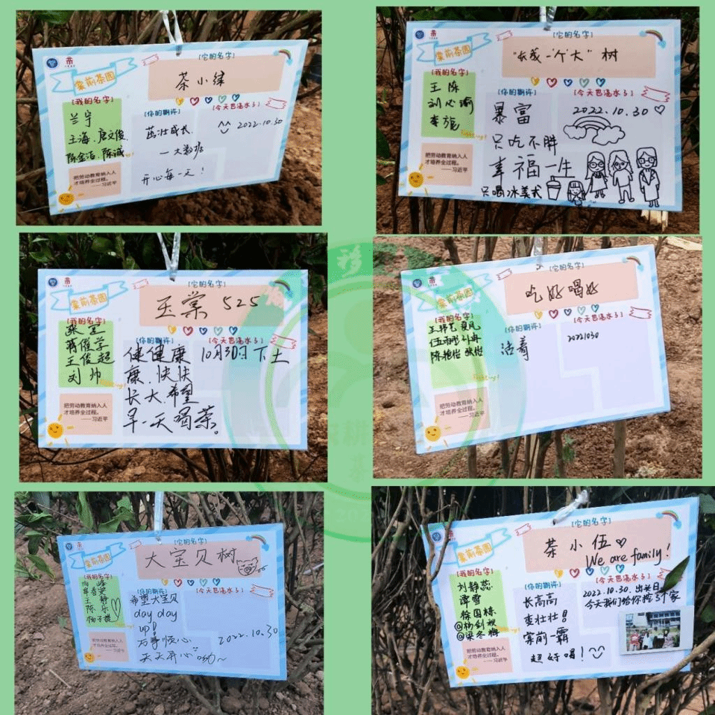 劳动的过程虽然总是充满艰辛,但“今天的幸福是劳动和红糖姜汤给的”,一桶热腾腾的姜汤在路旁冒着热气,为口渴的师生“待命”。习近平总书记指出:“人世间的美好梦想,只有通过诚实劳动才能实现。”“綦迹之树”、“茶小五”、“白白茶”、“大宝贝树”……五花八门的茶树名,承载着师生们的愿望、寄托着大家对茶树苗的期待,当茶树上专属于他们的挂牌迎风飘动时,当一棵又一棵茶树苗展现出盎然的生机时,老师和同学们纷纷合影留念,享受着此刻幸福的光景。