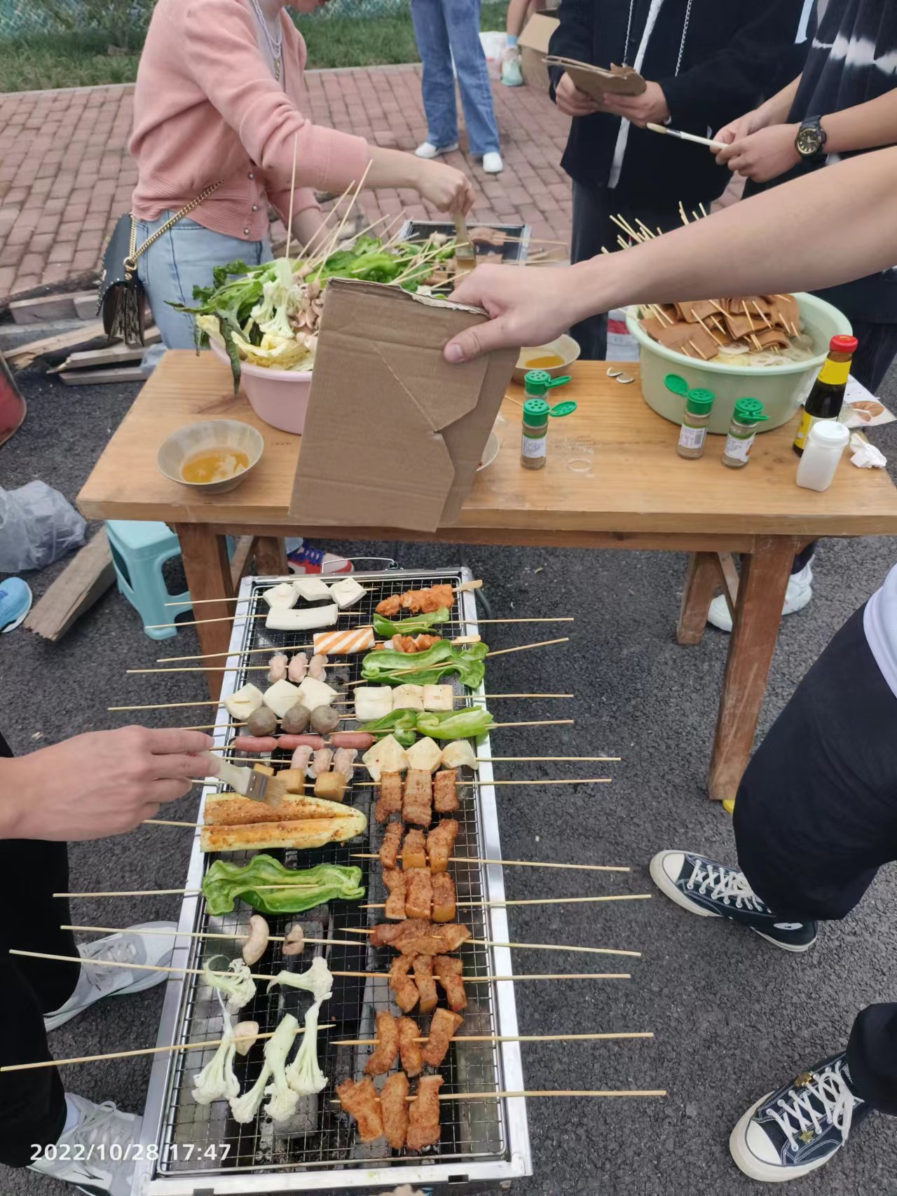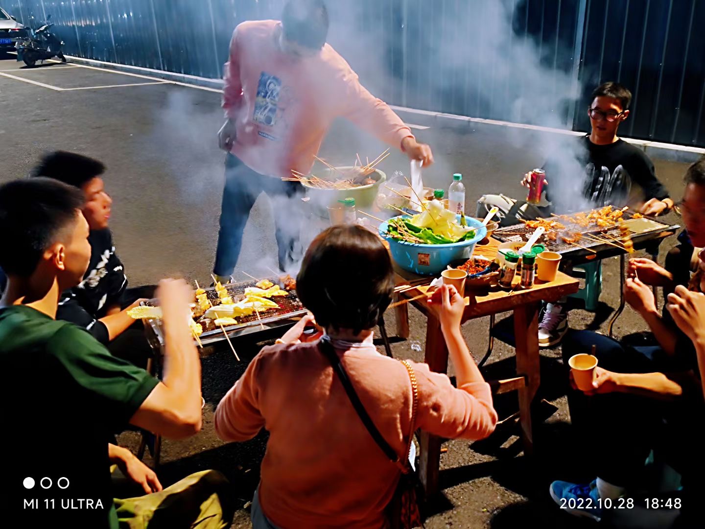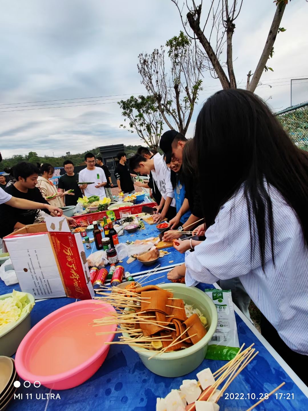 随后在大家的共同劳作下,铁锅发出咕噜咕噜声,香喷喷的鲜美之气蔓延迂回,萦绕鼻端,和着音乐,现场氛围迎来高潮,队员们拿着碗筷,排着队盛火锅,拿烧烤。围坐在一起,“觥筹交错杯杯尽。”与此同时队员们轮番唱歌异彩纷呈,魅力四射,现场群情激昂,气氛迎来更高潮。 锅底渐露,鼓腹含和,团建也即将落下帷幕,在两位老师的安排下,断头路恢复如初。除了脚印什么也没留下,除了记忆什么也没带走。