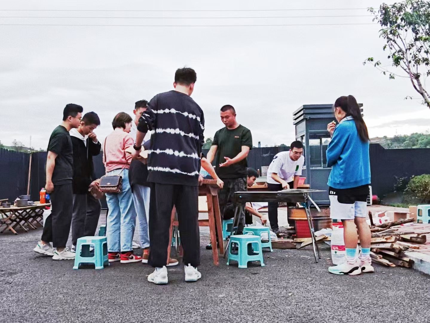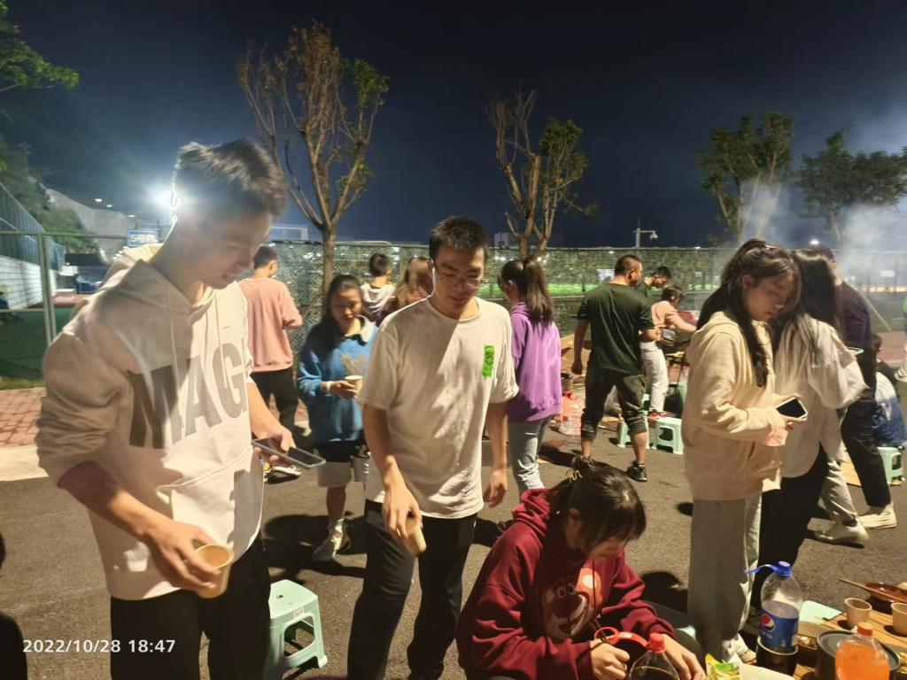 充足的前期准备和相关部门的帮助下,团建顺利的展开了。在张桃老师与黄杜娟老师的指挥下,队员们的配合下,大家分工有序,有的洗菜,有的切菜,有的料理,有的布置会场,团建进行的有条不絮又热热闹闹。