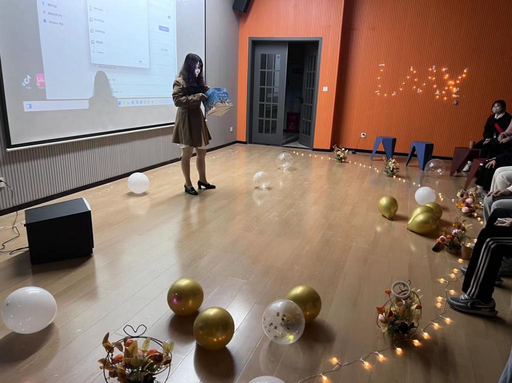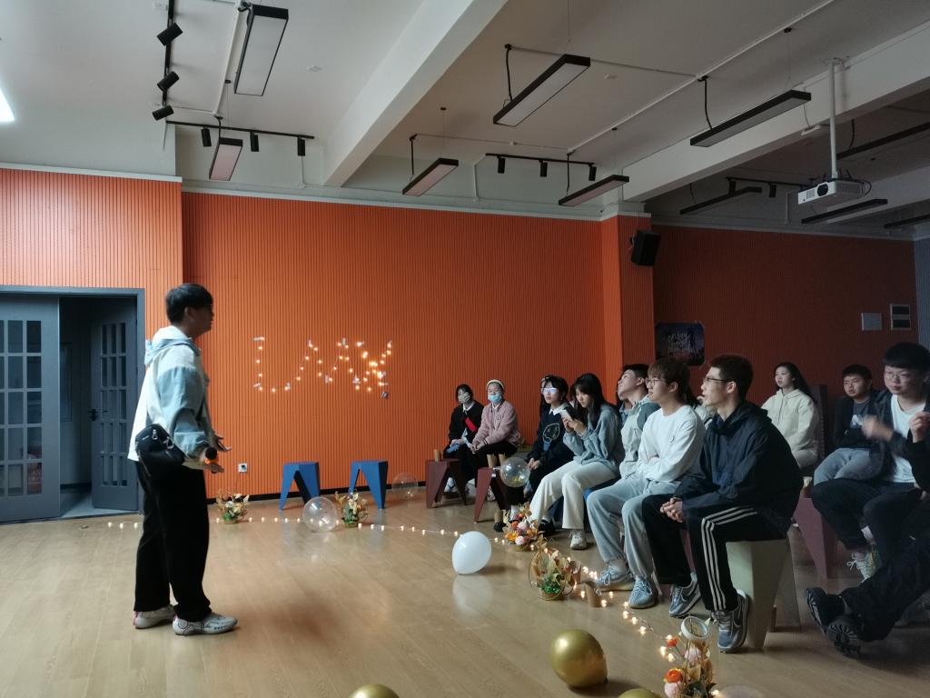 经过前期充分准备,黎老师和同学们共同设计了一个小舞台,鼓励每位同学勇敢展示自我。引导学生以脱口秀或才艺展现的方式介绍自己,促进同学们互相认识了解,同时也通过“抽奖”的惩罚小游戏进行互动。通过一系列趣味活动,师生共同参与,共同度过了一个美妙的开放麦之夜。