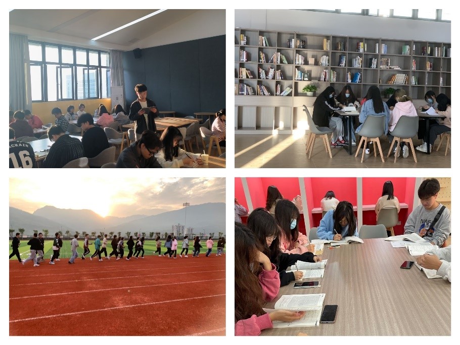 本月,数字经济与信息管理学院有序开展特色早自习,同学们根据自身兴趣爱好选择自己所喜欢的早自习,如互联网金融二班同学在操场做有氧青年,展现青春本色;管理科学与工程类七班同学重温红色经典,一起观影先辈故事;供应链3班坚持晨跑,强身健体。这充分体现了“乐教、乐学”的校训,积极落实“五育并举”全面发展的育人要求。同时学院组织同学们学习学生手册和阅读分享会,创造轻松、愉快的学习环境,营造浓厚的学习氛围,让同学们清楚地了解学校的规章制度,在交流的碰撞中增长了知识,开阔了眼界,树立了良好的学风。