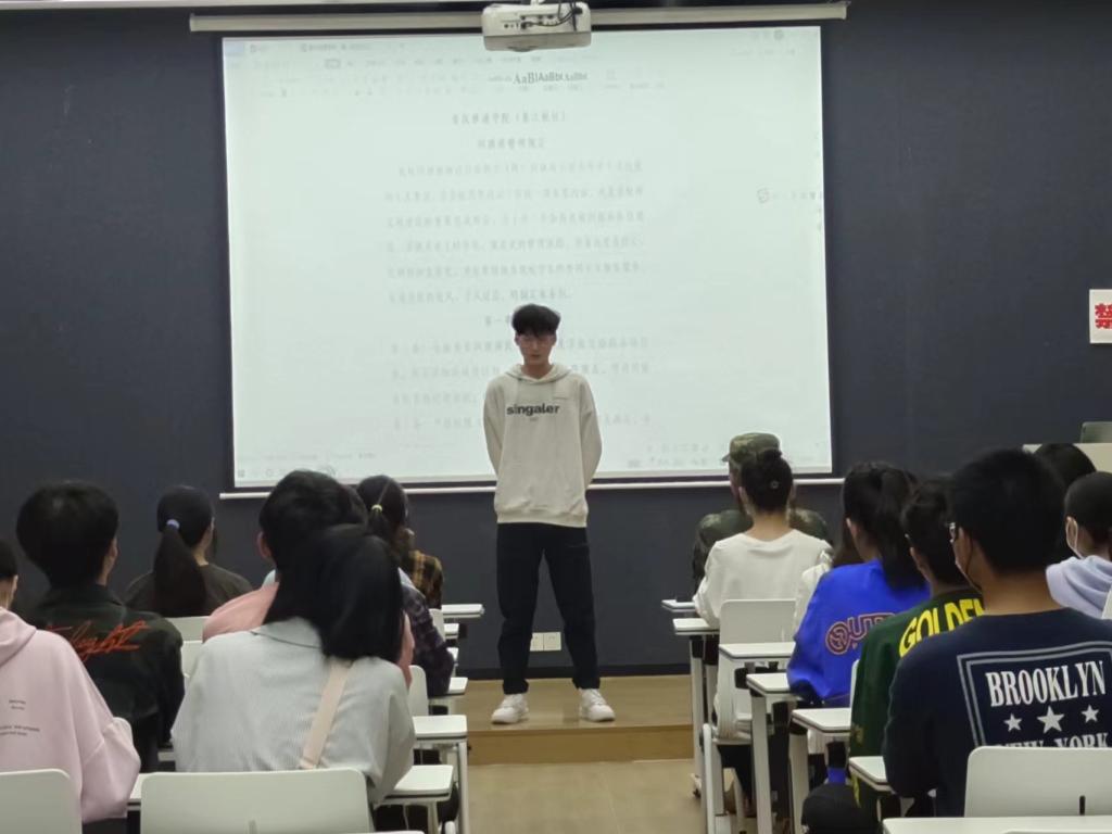 重庆移通学院国旗班于近日在瀛溪书院回声报告厅开展了今年第一次国旗班见面会,在本次见面会上新队员找到对国旗的崇敬与热爱!