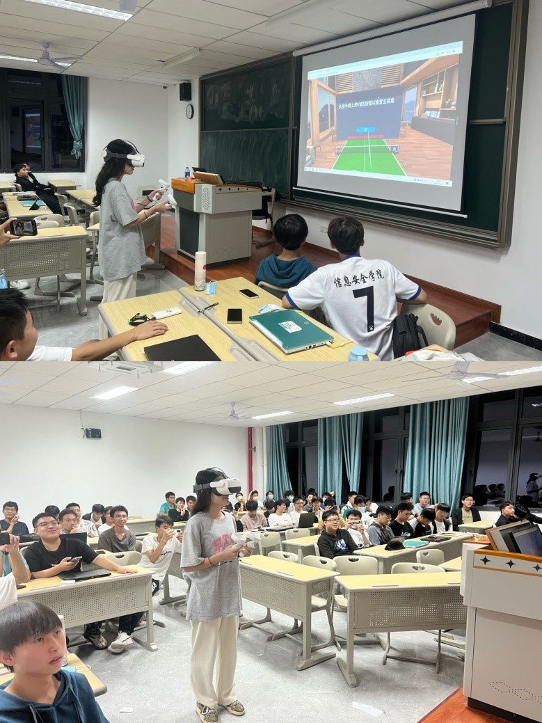 为了让学生对虚幻引擎有更加全面的认识,张老师的助教崔婷婷老师和王陈老师介绍了虚幻引擎的常见应用领域,如游戏、影视、建筑和虚拟现实(VR)行业。同时,张老师带上了VR设备,在课上带领同学们体验了由虚幻引擎制作的VR游戏和VR全景视频。虽然目前的VR内容还仅仅只是元宇宙最初级的形态,但体验过VR的同学都被VR技术所带来的沉浸式体验感所震撼,直呼非常过瘾。这种情景体验式课堂教学方法,能够极大地激发学生们的学习积极性,提升学生的课堂参与感。