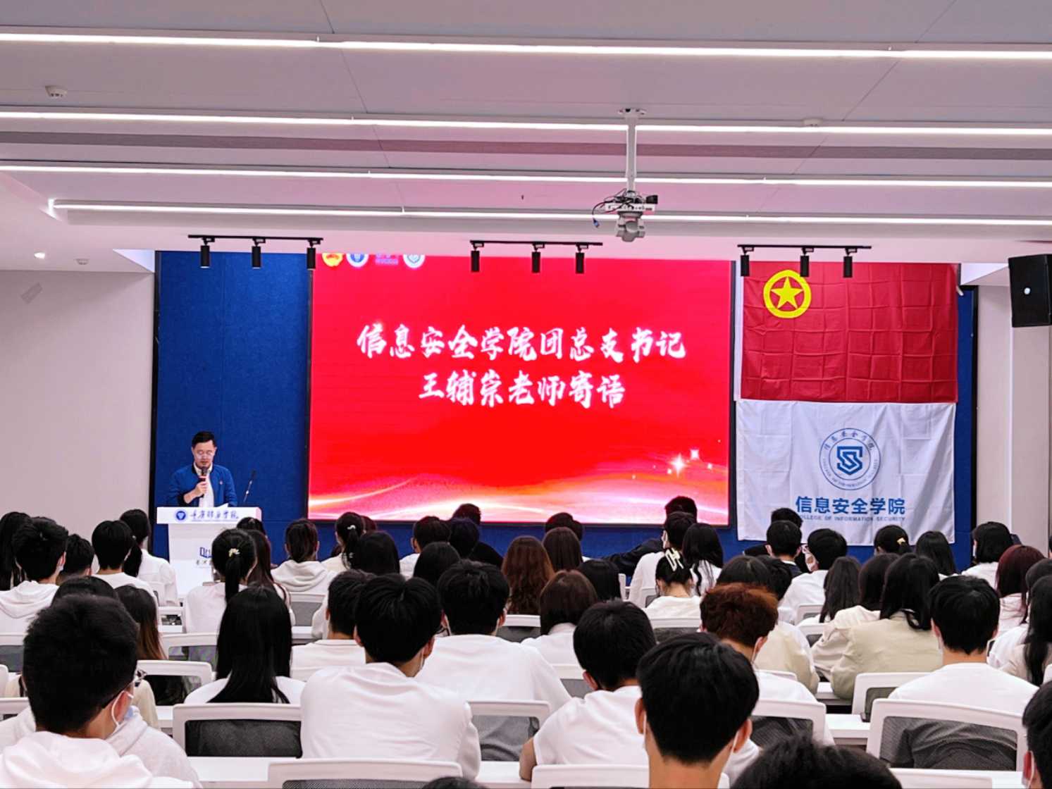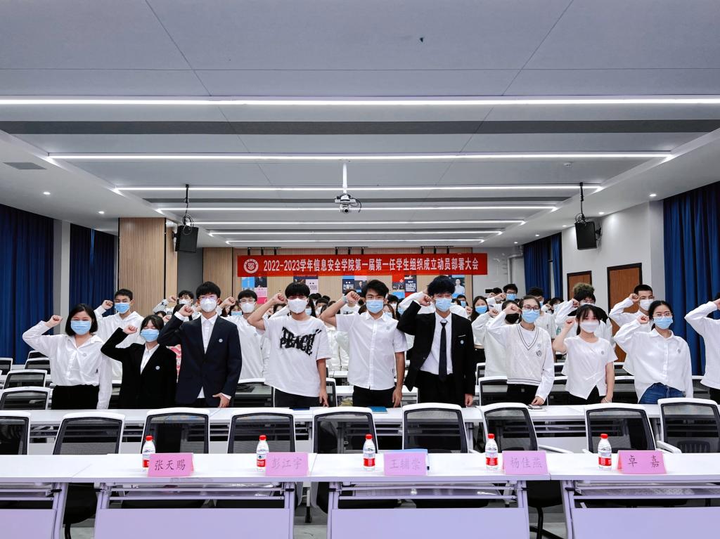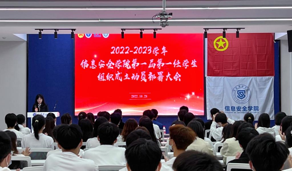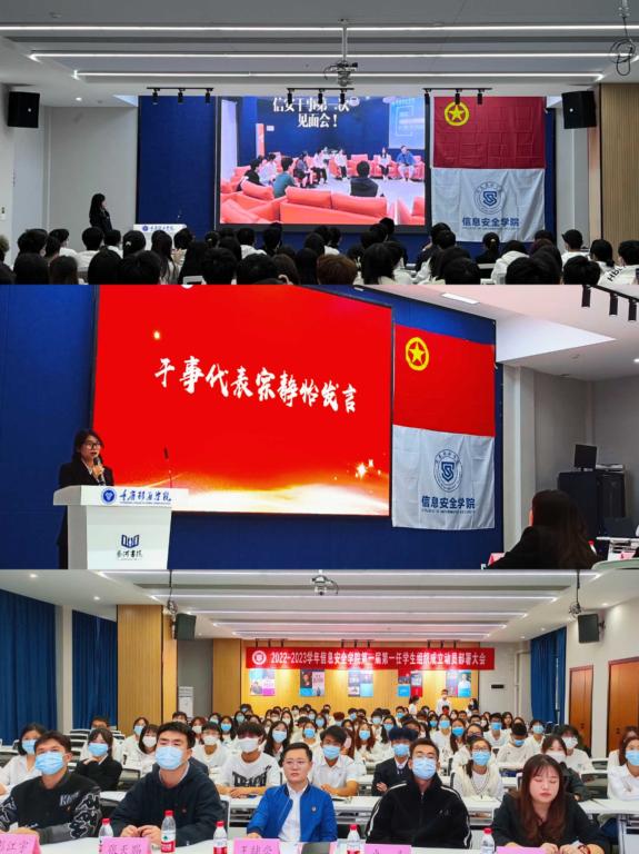 金风萧瑟秋光妙,激情满怀英气豪。10月28日,由信息安全学院团总支组织部组织的“2022-2023学年完满教育信息安全学院第一届第一任学生组织成立动员部署大会”,于学校綦河书院二号楼观涛多功能报告厅隆重举行。此次大会共邀请到了:信息安全学院团总支书记王辅崇老师,横山书院综合办主任张天赐老师,玉棠书院综合办主任卓嘉老师,团委杨佳燕、彭江宇老师,以及信息安全学院第一届第一任学生组织干部干事,本次会议由黄佳睿同学主持。