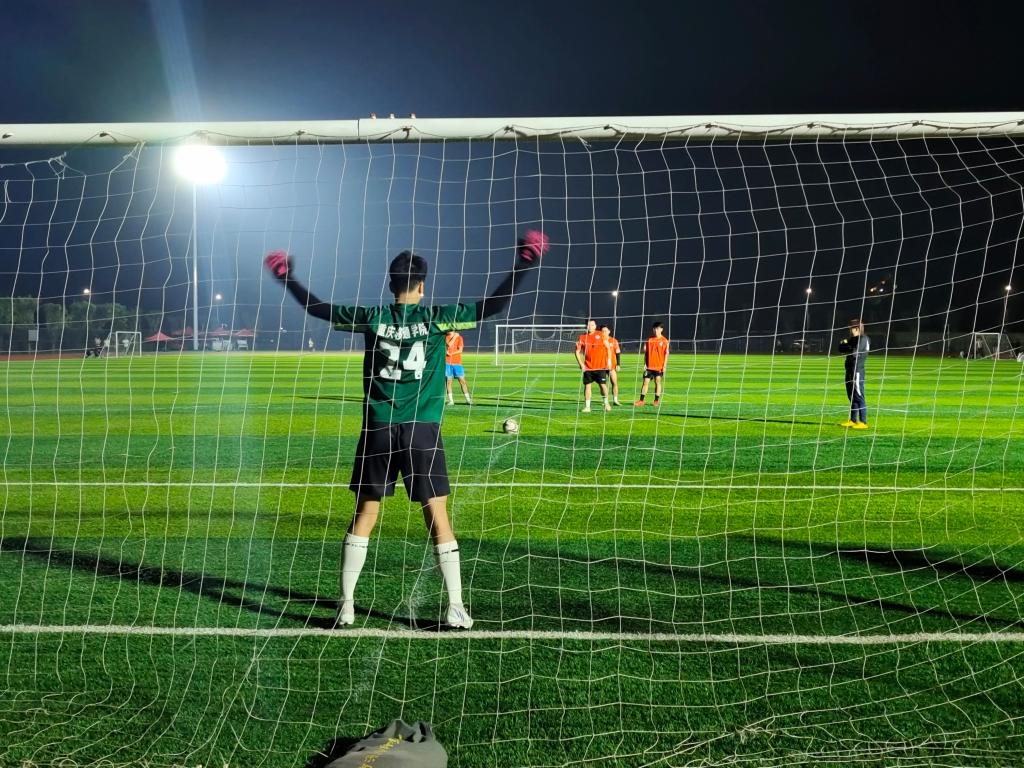 守门员技术与其他足球技术相比较为特殊,所以最后由张教练对男足守门员进行了进一步细致的技术指导,从最简单的步伐练习,到基本手型固定;从脚下移动眼镜观察,到倒地扑球;张教练一点一点的耐心指导。最后在点球大战中,学会冷静思考,提前判断,让自己站在门前变得更加自信,成为一道铜墙铁壁。