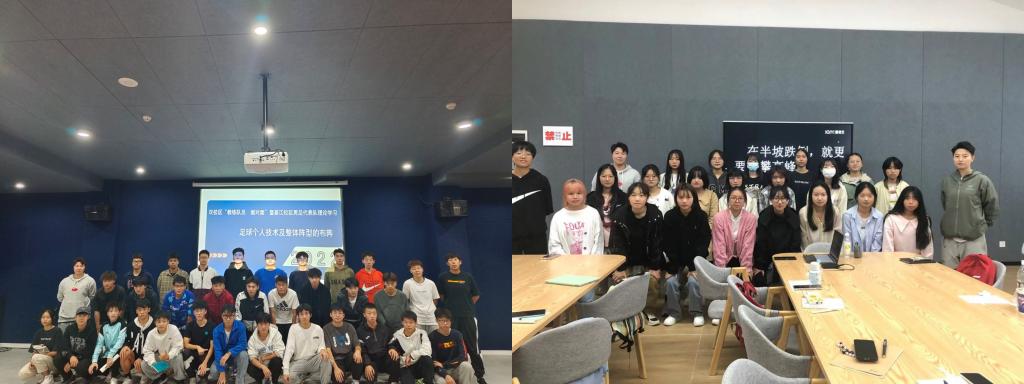 随着训练的结束,25日中午,教练们在多功能室各进行了一次交流会。江教练给男足队员们播放了自己参加全运会的比赛视频,讲述自己的过往经历,给队员了带来了更直观的实战技术指导,也鼓舞了队员们勇于参与竞争的士气。另一边张教练给男女足守门员观看了合川校区守门员的训练视频,张教练一边告诉队员们他人值得自身学习的地方,也一边询问队员们他人不足的地方,达到互相学习的效果,同时也提升了队员的观察及思考能力。