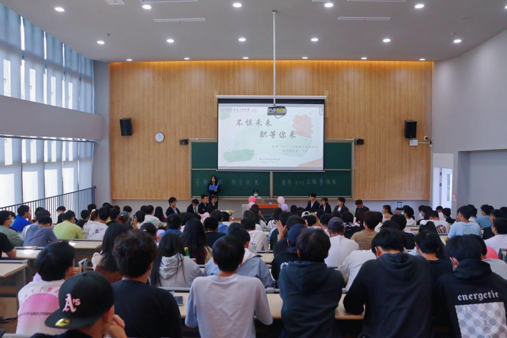 为引导学生树立正确的人生观、成才观和实事求是、励志图强的意识,科学规划自己的大学生涯和未来职业生涯,通信与信息工程学院为此举办了主题为“不惧未来,职等你来”的年级会,年级会以四个环节展开:畅想未来、名师助力、激扬青春、“职”“暑”于你。全生异科导师刘洋老师作为电子信息类6、7班的异科导师,被邀请参与了电子信息类1-6班的年级会,作为邀约嘉宾为电子信息类1-6班的学生们分享了职业生涯规划。