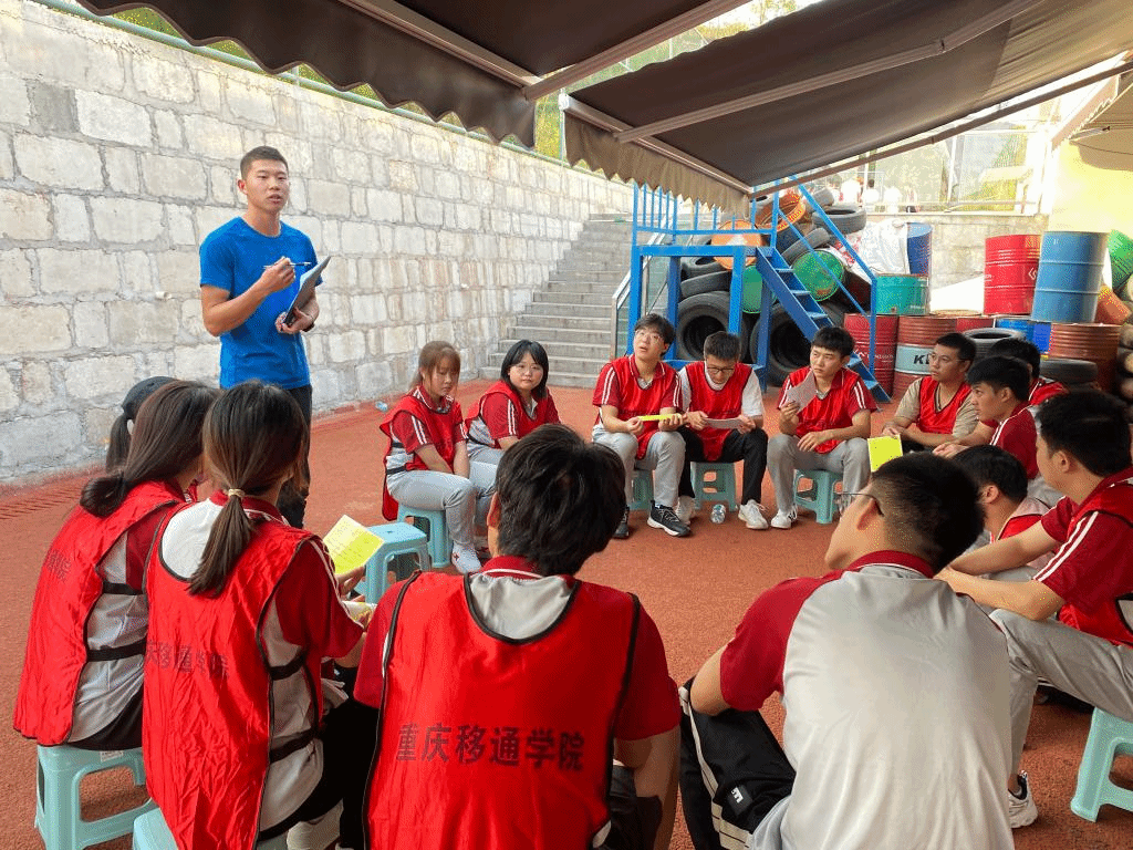 课程之初,13、14班同学共划分为四支队伍,并设计队名、队旗及队型。虽然两个班级已经进行了一年半的课程,但是团队成员彼此之间并非特别了解,在进行团队展示时,都略显拘谨,这次课程的目的就是为了让他们“白开水”似的友谊蹦出绚烂的火花。相信通过简单的整顿后迎接他们的是机遇也是挑战。“信任背摔”“雷阵”“穿越电网”“七巧板”……这些项目都是需要极强的团队协作意识才能完成的,或许在项目进行中时,同学们还未反应过就已经被迫结束挑战,但是在后面的反思中意识到自己的不足和团队的问题,每一个挑战都有进步,每一次总结总有成长。