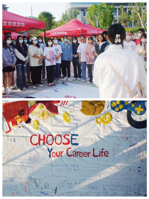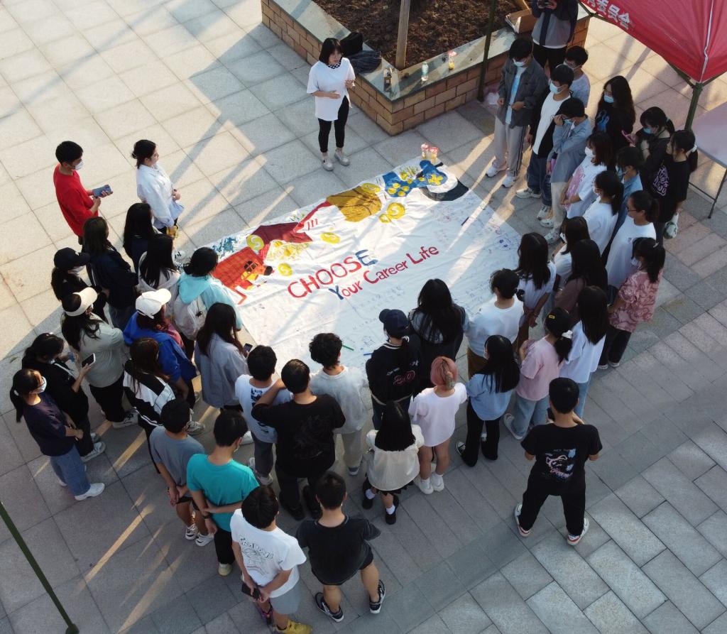 畅想职业生涯——绘画。求职之路,理应以乘风破浪之底气,永踏征程,并以破釜沉舟之信心,扬鞭足下。同学们纷纷立足职业生涯蓝图前,畅想着未来的职业生涯,在画布上留下浓墨重彩的一笔,彰显职业憧憬。