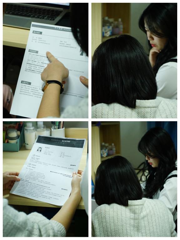 启航职业生涯——指导。年级会后期,肖琳老师对同学们制作的简历进行一对一指导,帮助同学们分析简历出现的问题,同时结合大家选择的“职业旅程”给予针对性建议,为同学们找准努力的方向,进而攻克和提升不足的地方,启航职业生涯之旅,完善自己的人生简历。