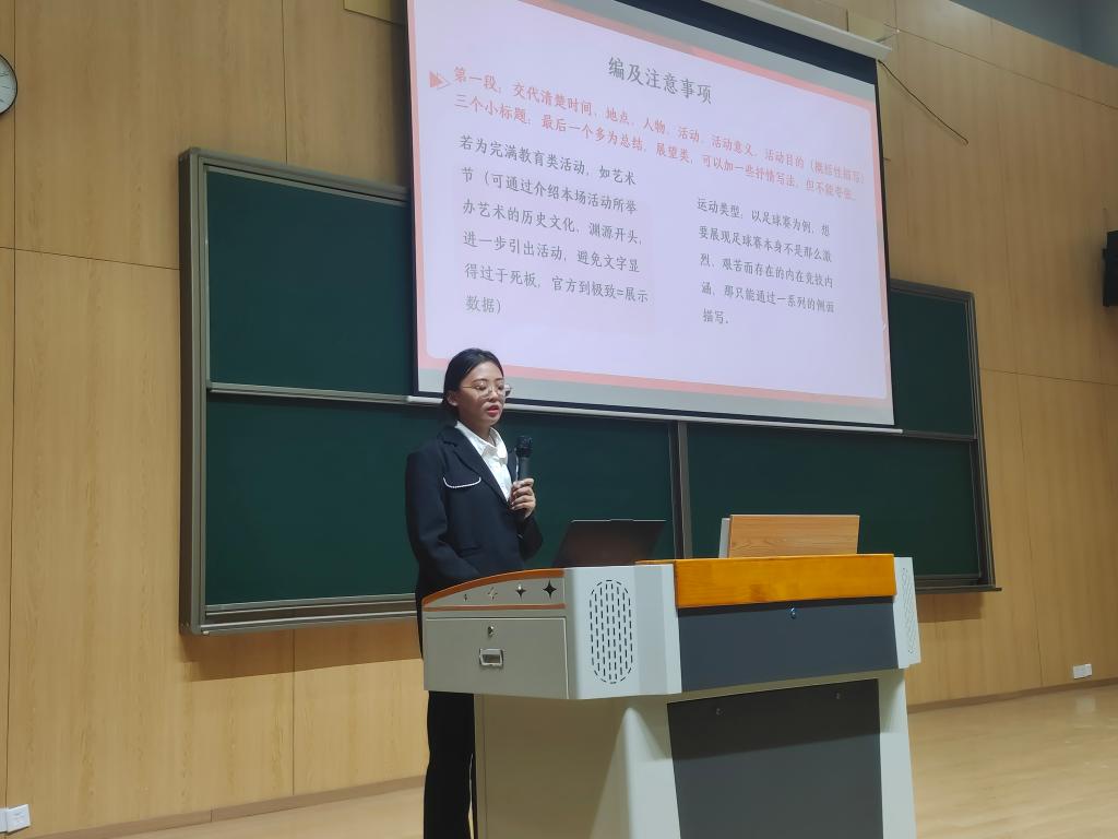 培训会上,学院宣传调研部对学校的“四位一体”双院制的育人模式和育人理念进行了再次深入地宣讲和介绍,特别是完满教育“志愿服务”“社团活动”“艺术实践”“竞技体育”核心内容进行了讲解,让大家清楚地找到如何去选择角度撰写新闻稿。同时,对各个版块的指导老师和相应的工作进行了介绍,让大家能及时请教相应老师指导。