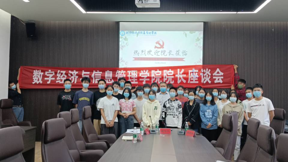 张焕忠老师向同学们介绍数字经济与信息管理学院的基本情况,让同学们对学院有更加全面的了解。本次座谈会为同学们搭建起了解惑的桥梁,是学生与领导面对面沟通交流的好机会。