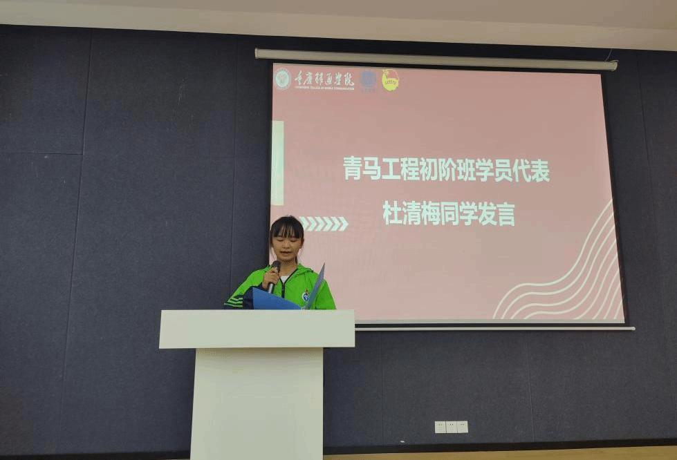 大会议程第三项,由初阶班学员代表杜清梅同学发言。她分享自己对于“青马工程”的看法,激起了同学们的干劲与激情。在场的同学深受鼓舞,并希望通过此次培训在思想有提升,工作有干劲,继续振奋精神,开拓创新,在自己的工作岗位上做出更大的贡献,打造出一支“乐于奉献,敢于创造,追求卓越,团结友爱,和谐高效”的学生组织队伍。