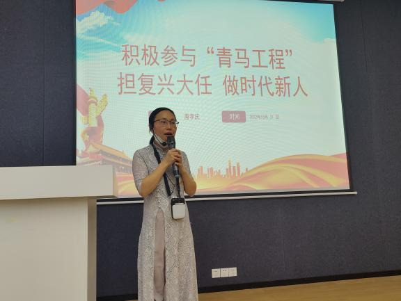 大会议程第五项,本学年“青马工程”第一讲。唐孝庆教授为在场学员深入解读“青马工程”,围绕“担复兴大任、做时代新人”展开培训,同时通过图览二十大,重温二十大主题。唐老师指出,青年一代要想有所作为,就得树立正确的政治方向,加强自身的理想教育,促进马克思主义在中国的传播,要时常关注国家大事;注重实践锻炼,培养团队意识和勇于承担、乐于服务的意识。唐老师殷切寄语,愿同学们能成为立大志、明大德、担大任、成大才的时代新人,努力增长才干,为祖国的建设添砖加瓦;务必不忘初心、牢记使命;务必谦虚谨慎、艰苦奋斗;务必敢于斗争、善于斗争,只有这样才能谱写出新时代中国特色社会主义更加绚丽的华章。