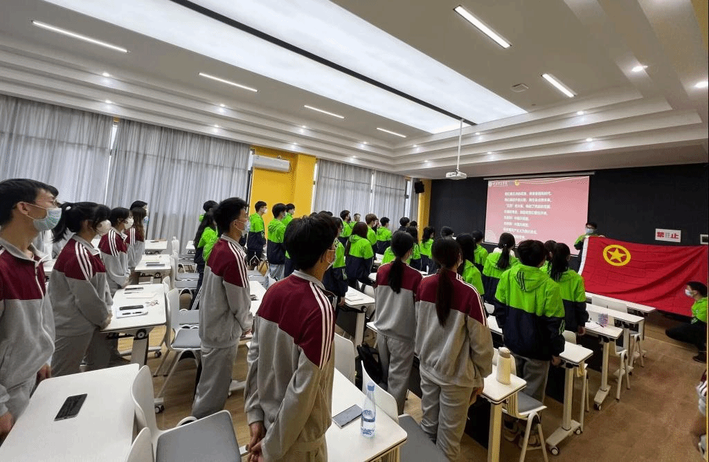 大会议程第一项,学员起立,奏唱《光荣啊!中国共青团》。