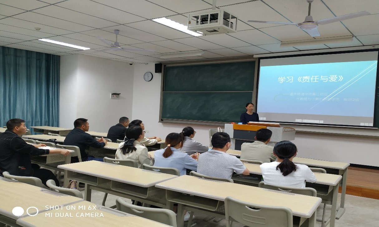 为更好地开展今后的教学教研工作,进一步以高标准履行好岗位责任和义务,2022年10月20日下午綦江校区大数据与计算机科学学院教研2组的老师们在仁者楼301开展教研活动,集体学习集团总裁彭鸿斌先生的《责任与爱》。