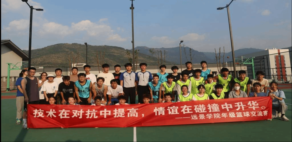 平易近人的老师,公正无私的裁判员,幽默风趣的解说员以及奋勇争先的运动员共同构成了秋日午后校园里亮丽的风景线,在践行完满教育的过程中,学生也在热爱中逐渐走向专业化,创造一个又一个惊喜。 赛后学工办主任郭淼老师与学生交流:篮球,作为一项团队对抗的球类竞技,不只是身体的碰撞,也是谋略的较量;场上的团队协作,场下的呐喊助威都在牵动着团队里每一个人,无论输赢,过程中大家能共同参与其中,感受到团队力量最重要!“技术在对抗中提高,情谊在碰撞中升华”,篮球赛为学生切磋、师生互动建立了良好的非正式平台,强化了远景学院的体育文化氛围与师生归属感,也践行了学院“双导师”协同育人的理念。篮球赛是开始,让我们一同期待更多精彩!