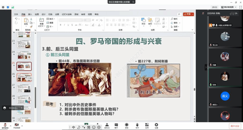 “乘众人之智,则无不任也;用众人之力,则无不胜也”,为兼顾防疫工作与教研活动,10月16日晚上9点,根据通识教学部(綦江校区)教学常规安排,老师们准时在腾讯会议开展云端跨学科集体备课活动。《欧洲文明的现代历程》、《中国近代经济地理》、《古典音乐入门》和《音乐剧》的所有老师和合川校区历史教学团队负责人颜昌义老师参加此次集体备课活动,张艳老师主持。