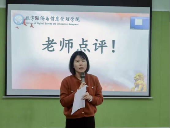 习近平总书记谈到:“实现中国梦是一场历史接力赛,当代青年要在实现民族复兴的赛道上奋勇争先”。但正因时代不同,所以新时代的青年大学生拥有着不同的使命,要立志把时代的接力棒接住并传承。在评委和观众热烈的鼓掌声中,活动尾声,数字经济与信息管理学院副院长任瑞娟院长和艺术修养与实践指导老师韩玉老师对同学们的演讲进行点评,她们指出演讲中的优点和不足,鼓励同学们总结经验,更进一步。希望所有同学以奋斗作为青春最靓丽的底色、以行动作为青年最有效的磨砺,让青春的力量在时代的洪流中披荆斩棘、乘风破浪、奋勇前行。
