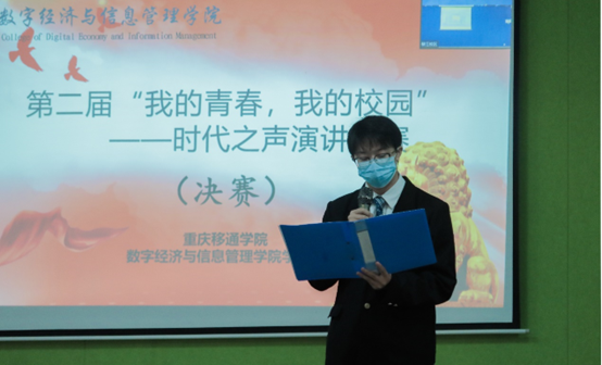 “青春须早为,岂能长少年。”为深入贯彻习近平新时代中国特色社会主义思想和党的十九大精神,带领广大青年争做习近平新时代中国特色社会主义思想的传播者、践行者。10月14日,12时,重庆移通学院数字经济与信息管理学院綦江校区在綦河书院——两句·演讲培训室举办“我的青春·我的校园”时代之声演讲比赛决赛。出席本次决赛的嘉宾及评委有副院长任瑞娟老师、社团活动板块指导老师刘琳老师、吴丽玉老师,綦江校区社团活动指导老师任超群老师,志愿服务、组织建设指导老师王颖老师,艺术修养与实践指导老师韩玉老师,竞技体育指导老师张焕忠老师及班导师团队。