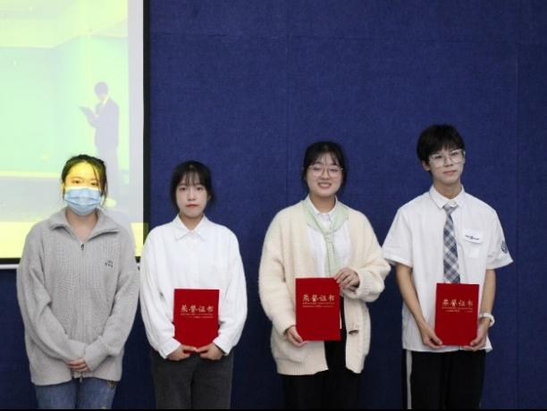 比赛一共评选出一名一等奖,两名二等奖,三名三等奖,四名优秀奖,一个最佳团队奖,由学院活动指导老师为大家颁发证书,以示鼓励。本次演讲比赛给同学们搭建了一个展示自我和发挥才能的舞台,充分展现新生力量朝气蓬勃、积极进取的良好风貌,丰富校园文化,推动我院四位一体双院制建设。比赛暂告一段落,但每一个充满热爱的灵魂都将闪闪发光。