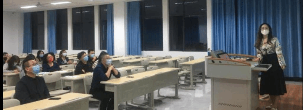 周晓蝶老师从“如何提升科研水平”和“如何提升申报科研成果奖的中标率”两个维度对教师们的学术科研提升路径进行了细致讲解。要点包括如何从选题入手、构建文章整体框架、合理选择研究方式、完善内容要素以及如何最终形成一份完整且有创新性的论文;艾鑫老师从教学方法改进层面分享了《基于翻转课堂的同伴教学法》。艾老师表示,翻转课堂的教学模式顺应了信息时代的人才培养要求,这种模式基于传统课堂形式,强调师生、生生之间的互动,以达到同伴教学、培养学生高阶思维能力的目的。