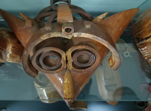 除了竹雕以外,还有记录民族生活风俗的版画、极具特色的苗族服装、类似祭祀的神话面具与乐器,还有用来祈福的木牌,能看出时间在上面留下的痕迹,由此可见窥见綦江人民以前的风俗习惯。