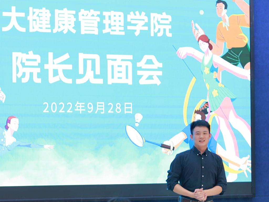 秋高气爽,硕果累累,数年寒窗苦读今朝终在健管相遇。为更好解决同学们在学习和生活上的问题,增强朋辈交流氛围,大健康管理学院于2022年9月28日17:10在綦河书院2号楼观涛多功能汇报厅举行了2022-2023学年第一学期首次院长见面会。参与本次活动的有大健康管理学院院长林毅博士、学工办主任尹金维老师、助教姜晴秋老师、教学秘书彭丽珺老师、辅导员张焕忠老师以及2022级体育经济与管理专业全体学生。