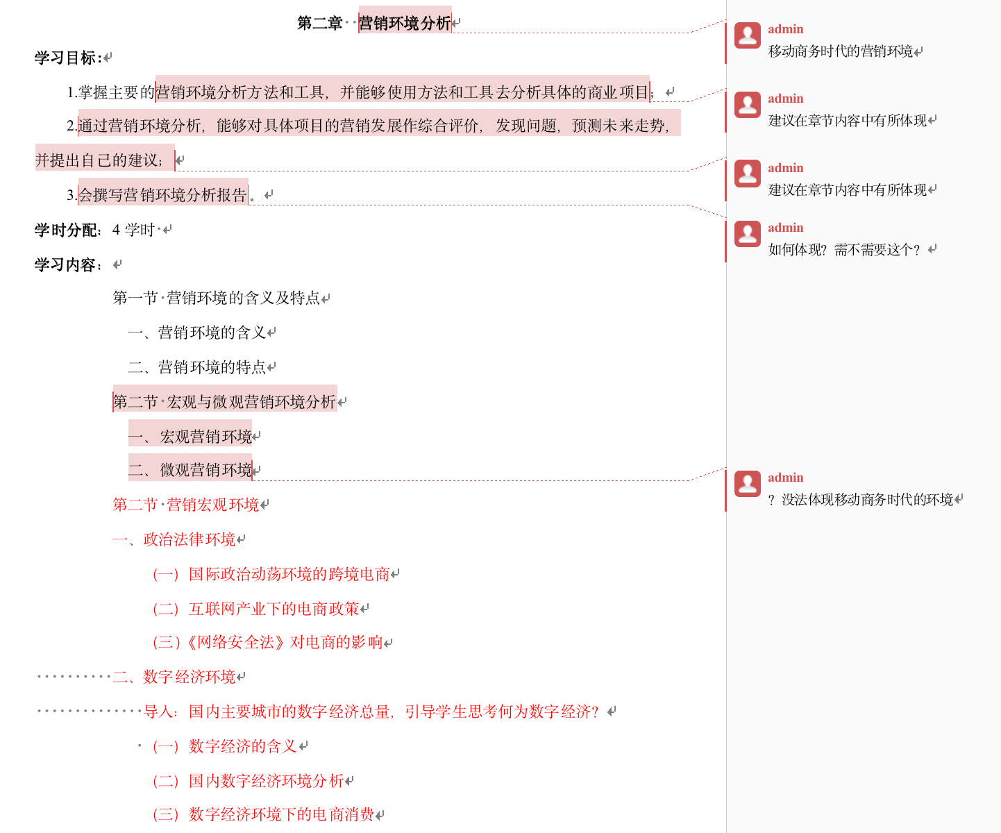 会上,范院长强调了全校商科课程进行教学大纲改革的首要性、重要性以及必要性,并以《移动商务时代的品牌与营销管理》这门课程的教学大纲改革为例,在原有大纲的基础上进行详细的批注和修改,主要突出“移动商务时代”大背景以及信息产业特色化。现场用修改后的第一章和第二章作为示例,讲解改革思路:第一章第一节首先让学生理解什么是移动商务,然后讲解移动商务的发展历程及趋势;第二节主要引导学生理解移动商务时代的营销与品牌概述;第二章第二节的营销宏观环境,也应该是移动商务时代企业面临的宏观环境分析,即在移动商务时代背景下主要从政治法律环境、数字经济环境、消费文化环境、数字技术环境4个方面的呈现。同时,范院长还现场将修改后的大纲与PPT课件结合,向老师们讲解用意和效果。只有贴合新的课程名称以及信息产业特色的课程大纲,才是全校商科真正需要的教学大纲。