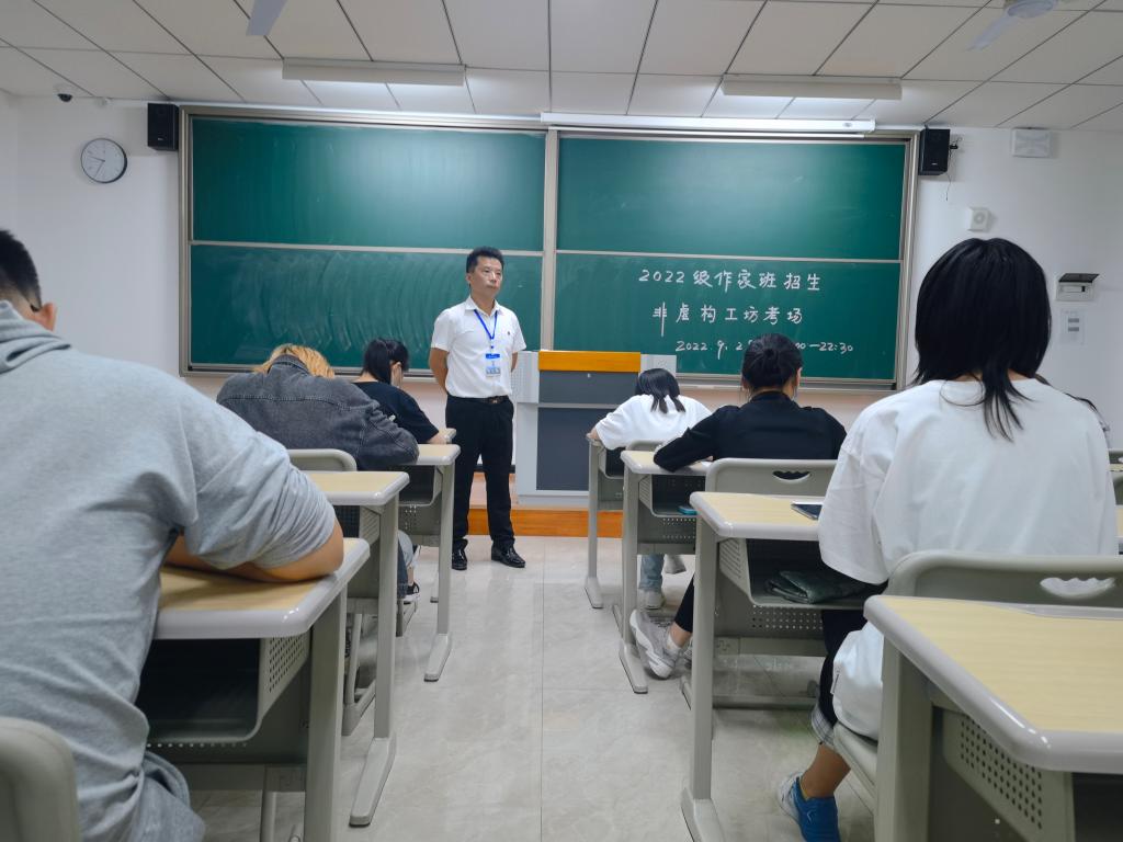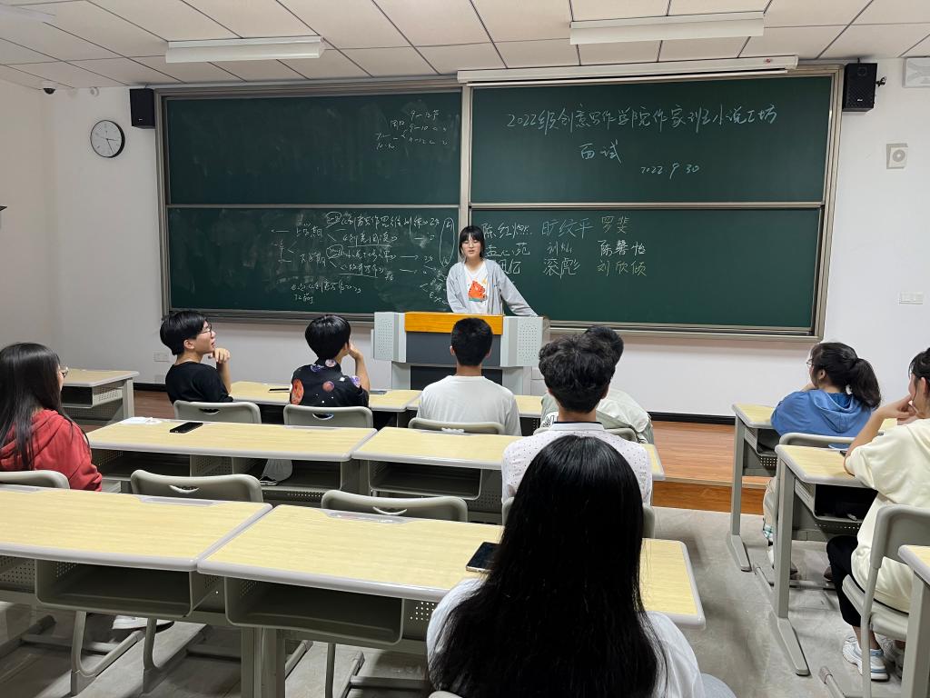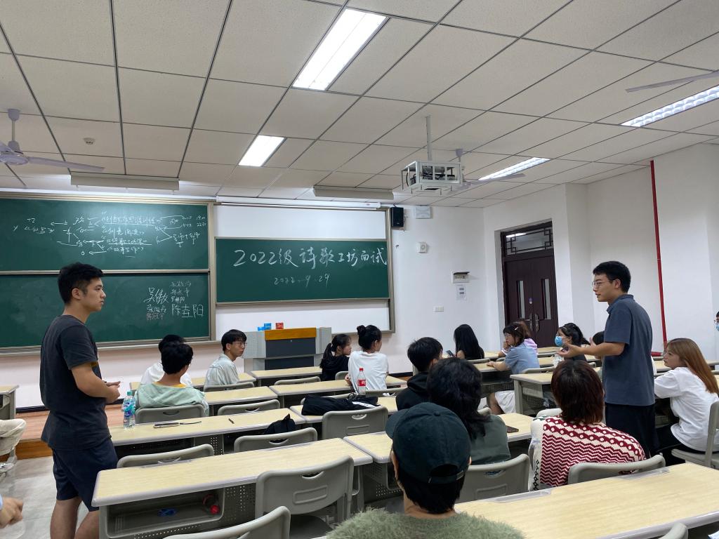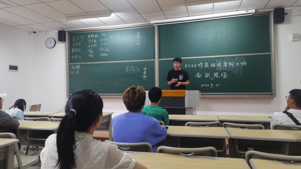 笔试现场,在仁者楼开了六个教室,数百新生怀着忐忑的心情进入心仪的考场,展开想象的翅膀,奋笔疾书。还有不少没能返校的学生,一直强烈要求线上同步考试,老师们一一满足要求。综合线上线下成绩,一些好苗子渐渐浮出水面,进入了面试阶段。