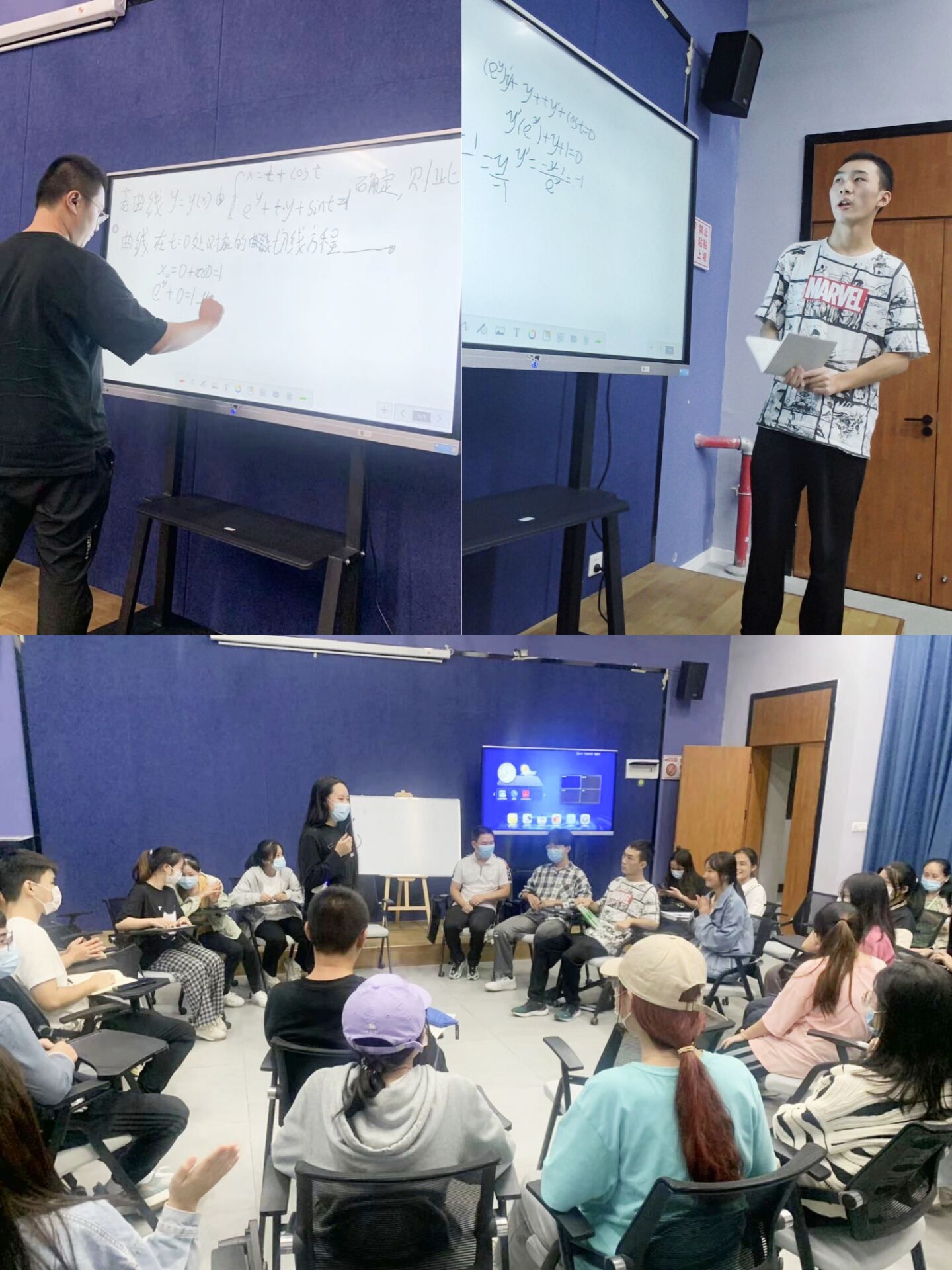 9月28日晚在两句·演讲培训室,在龚德彬的主持下,一场别具特色的数学讨论开始了。首先,大家积极分享了自己在大一学习数学的思路、方法,这些简便的方式方法同学们以后学习数学提供了便捷。接着,陈玲、闫春娟、吴小瑞3位老师给大家分享了两个比较简单的数学竞赛题,供大家思考,同学们之间积极讨论、思考。一段时间后同学们积极发言,站起来给分享解题方法、细心讲解解题过程。一道两道数学竞赛题,不仅巩固了同学们大一所学的知识,更提高了同学们的思维能力,还拉近了同学们之间的感情。