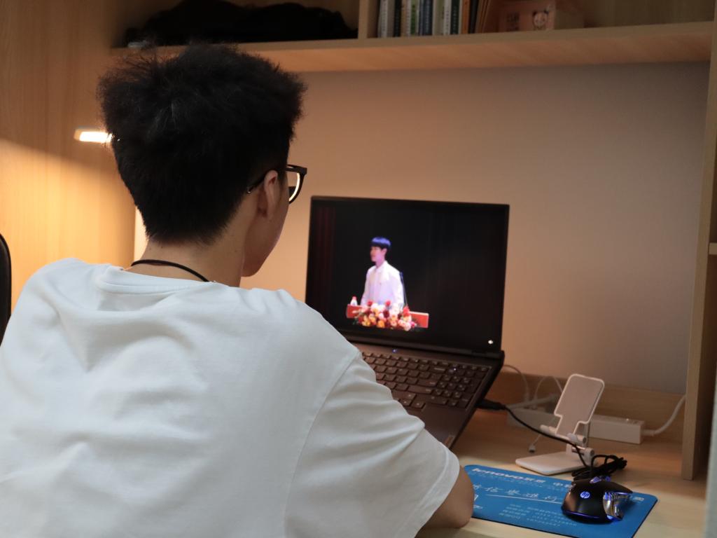 通信与信息工程学院采用三点分散的防疫措施,有效的减少人员的密集接触。通信与信息工程学院副院长王国树教授与教师代表、新生代表共112人在綦江校区横山书院阶梯教室集中观看开学典礼。新生辅导员周靖鱼、邓艳、游荟平、刘林林各带领60名同学统一在仁者楼401、402、403、404教室观看直播。其他新生分别在宿舍通过个人设备参与到本次的新生开学典礼。