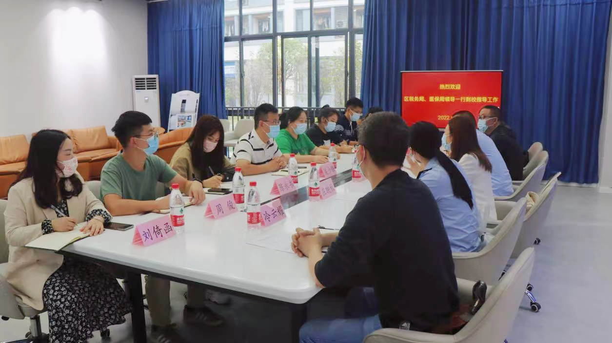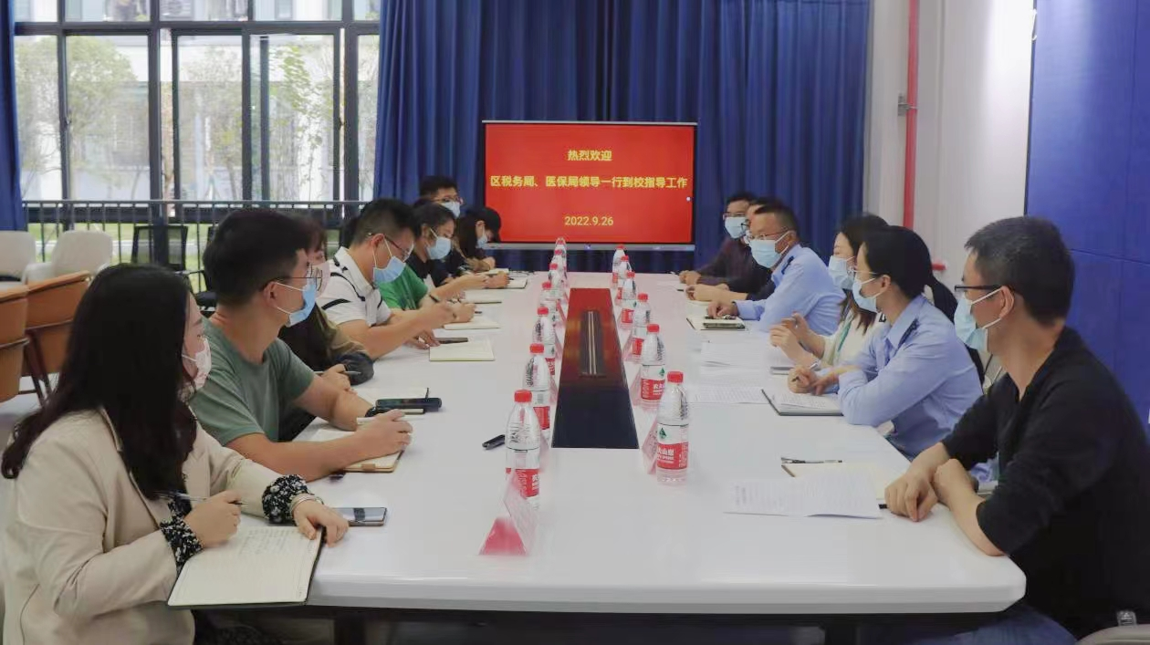 2022年9月26日,綦江区医保局参保科科长陈希、税务局社保非税科科长张伟带队来校进行医保工作调研指导。綦江校区学生处副处长梁少锋、财务处副处长刘彦廷,学生处、财务处、基建后勤处及二级学院代表参加了调研座谈会。