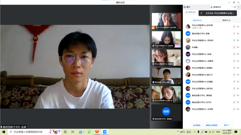 为了保持学生社团的新鲜活力以及内驱力,选拔一批优秀的、合适的社团骨干,引导社团向着更好的方向发展,学生社团管理中心分别于9月15日在腾讯会议、9月24日衡山书院HS555社区服务中心以线上+线下的方式分别进行了2022-2023学年学生社团负责人竞聘面试。从临时负责人到负责人,改变的不仅仅是一个称呼,更是社团人的突破和延续。