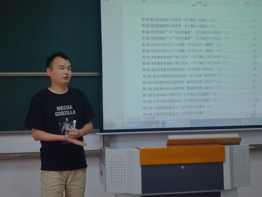 接着,新入职的付炜老师进行了《创意写作》的课程说课,《创意写作》是实践性很强的课程,注重培养学生的写作实践能力,而这种能力必须在丰富的自我创作实践中培养。创意写作教学过程中,主要不是靠传授理论知识,而是靠在大量的、丰富多彩的写作实践中,感悟习得,逐渐掌握运用创作的规律,并保持个人创作的独特性。付老师作为青年作家结合自身的创作实践,从思想、想象、人物、语言、故事、谋篇六个大的方面进行构架,针对16个创作技巧的分类进行了详细的说课。