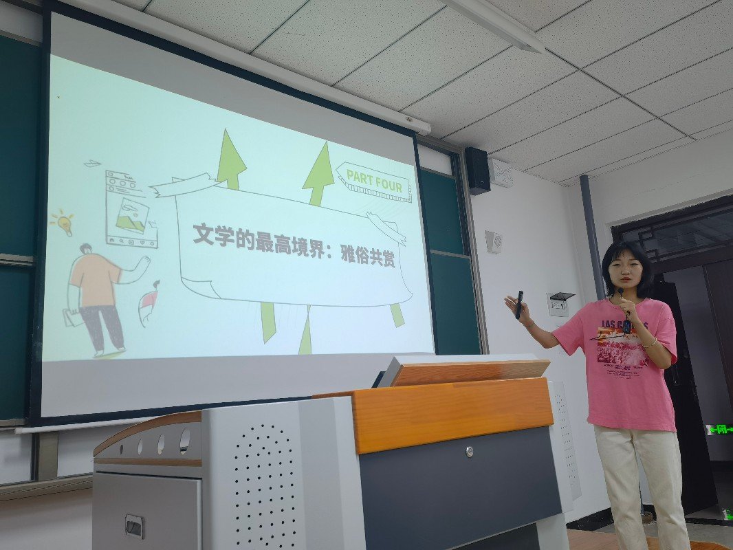 段瑶老师首先介绍《文学基础(1)》旨在拓宽学生的知识领域,让学生了解一些最基本的文学概念;调动学生对文学作品的多角度欣赏,提高学生了解文学、阅读文学作品的兴趣;培养学生最基本的文学修养,使学生具备最基本的文学理解;通过对文学的了解,提高学生的写作兴趣。段老师针对从文学中抽出十五个对立的概念:如永恒与发展、才华与审美、高雅与通俗、真实与虚构、记录与重构等,一一进行了课程展示与讲解。