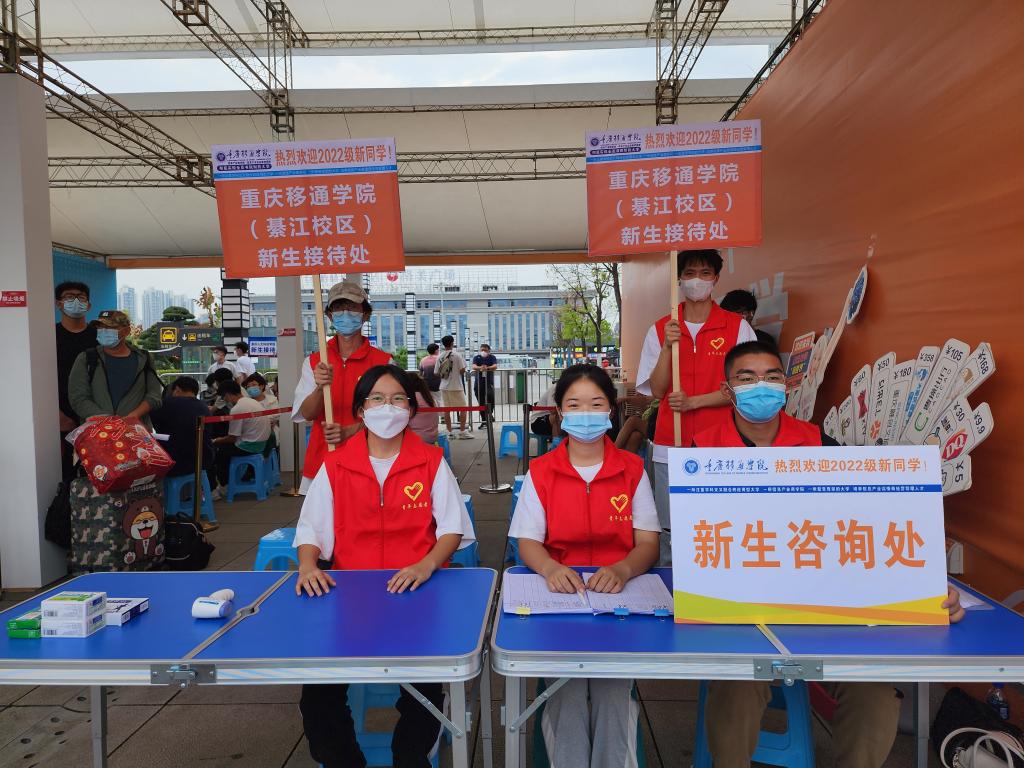 早晨六点,天蒙蒙亮,学院接站的带队老师就早早出发了,由田海燕老师和胡戈立老师带领二十余名志愿者分别前往綦江东站和重庆北站进行校外迎新工作,迎接来自全国各地的莘莘学子。在车站设立的接待点,每一趟车一到站,众多的志愿者马上微笑着迎上去:“你好”,“通信学院的在这边”,“同学从哪个区来的”,并“抢”下他们手中沉重的行李,为他们指明方向以及一些注意事项。通信的迎新工作在校外如火如荼的进行着。