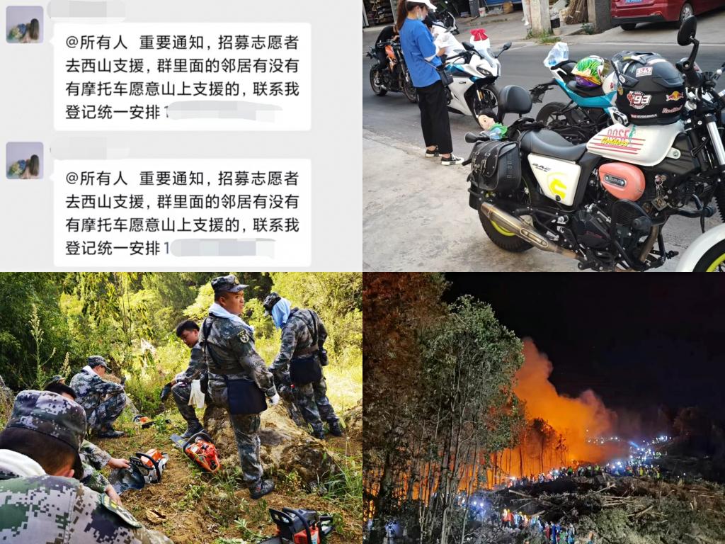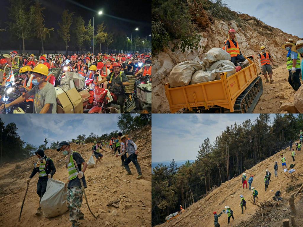 面对熊熊山火,重庆当地救援人员冲锋在前,昼夜鏖战,各地武警官兵、民兵星夜兼程增援重庆。山下,众多市民志愿加入灭火大军,骑着摩托上山开辟隔离带。