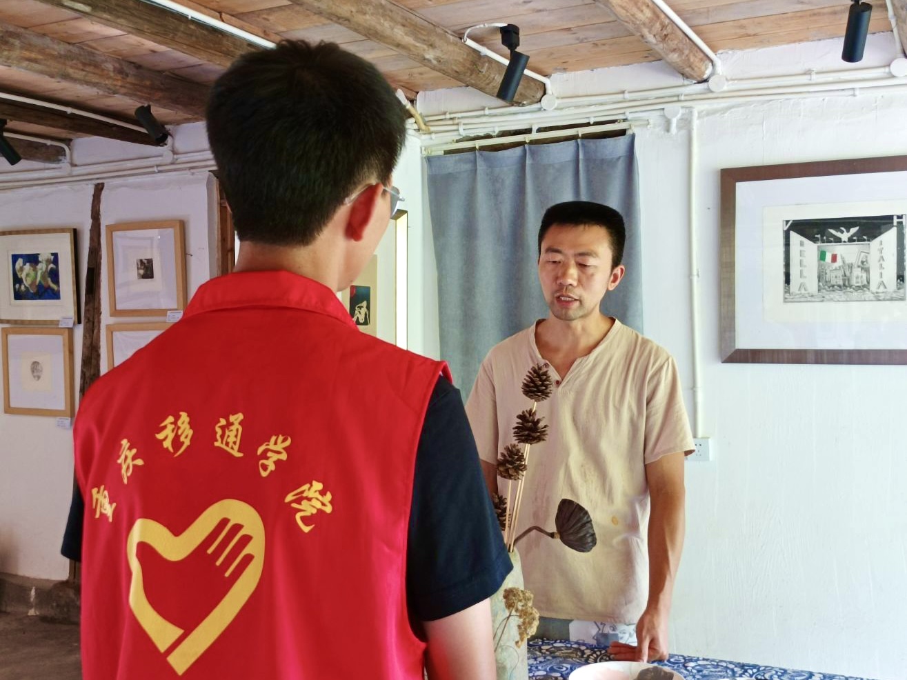 悠悠石板路,长长版画街。为寻找东溪镇退伍军人足迹,传播红色文化,三位“溪溪”来到东溪镇版画街,以访谈对话的形式记录了刘叔叔跟随部队的生活和退伍后的所闻所感。“我高中毕业后就到南海开启了我的军旅生活,和大多数的军人一样,军旅生活是终身难忘的,他不仅让我增强了身体素质更重要的是给我留下军人的生活准则与乐于助人的品格。”退伍后,刘叔叔来到了版画院学习版画制作的相关知识,也通过一些实践行动为附近的村民提供方便,践行在部队留下的优秀品格。在采访中,刘叔叔多次提到不要因为功名利禄而去帮助他人,为左邻右舍提供便利也是帮助自己。