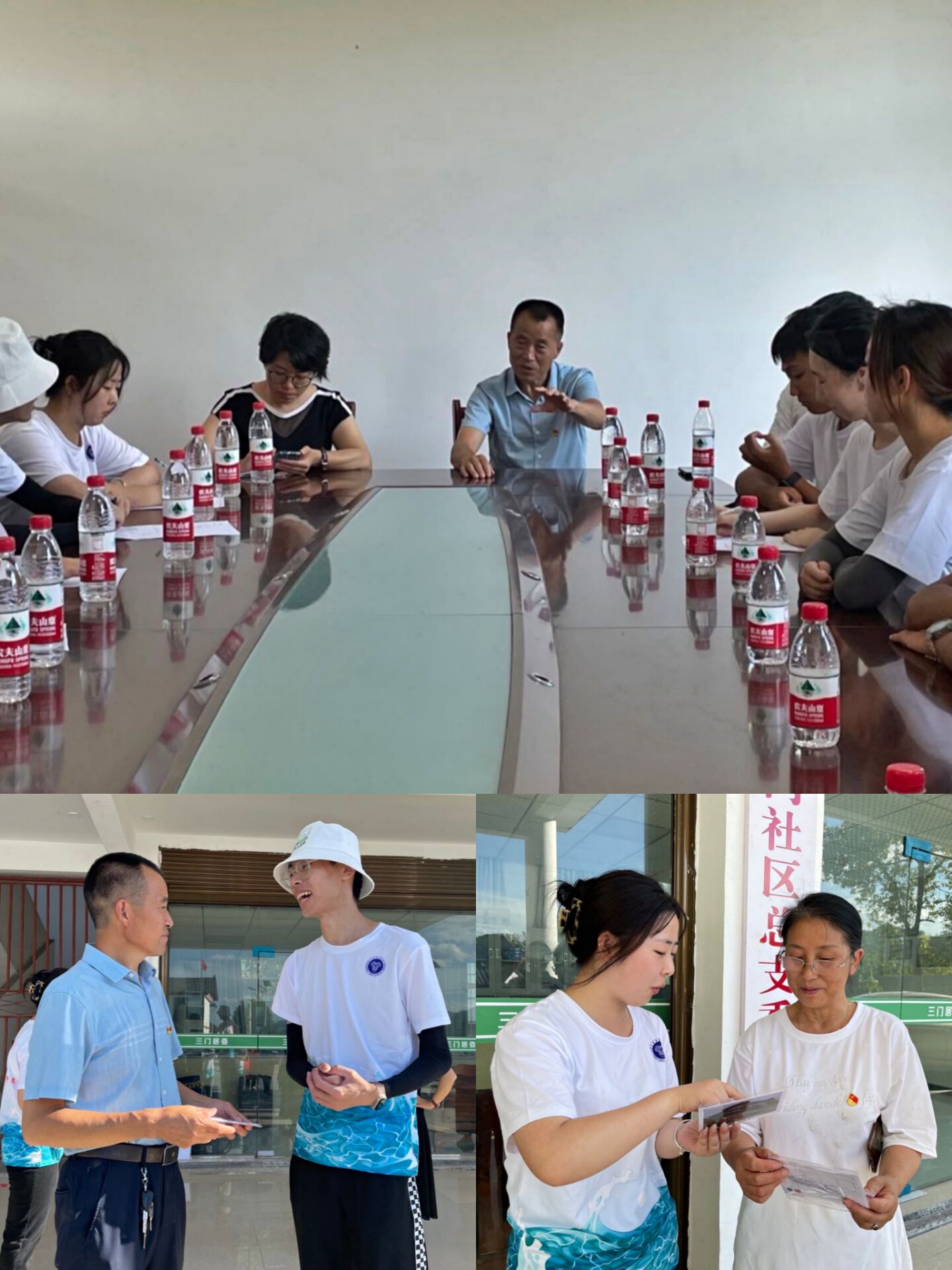 “黔行者”们跟随书记的步伐来到三门社区总支委员会,与书记就三门社区的扶贫措施和效果、特色农产和销售以及社区环境卫生进行了交流。“黔行者”们在与书记的交流中了解到三门社区实行牲畜产业、柑橘产业和旅游产业三条产业链并行发展,共同带动三门社区振兴发展的扶贫措施,同时也了解到信息产业的贫乏也是濯水镇在乡村振兴道路上很大的阻碍。对此,“黔行者”们结合自身专业能力为解决这一难题建言献策,提出搭建网络直播平台,开展下乡志愿服务等多种方式助力三门社区持续发展。交流结束后,“黔行者”们赠送给书记队员拍摄的濯水美景原创文创明信片,受到书记的喜爱。