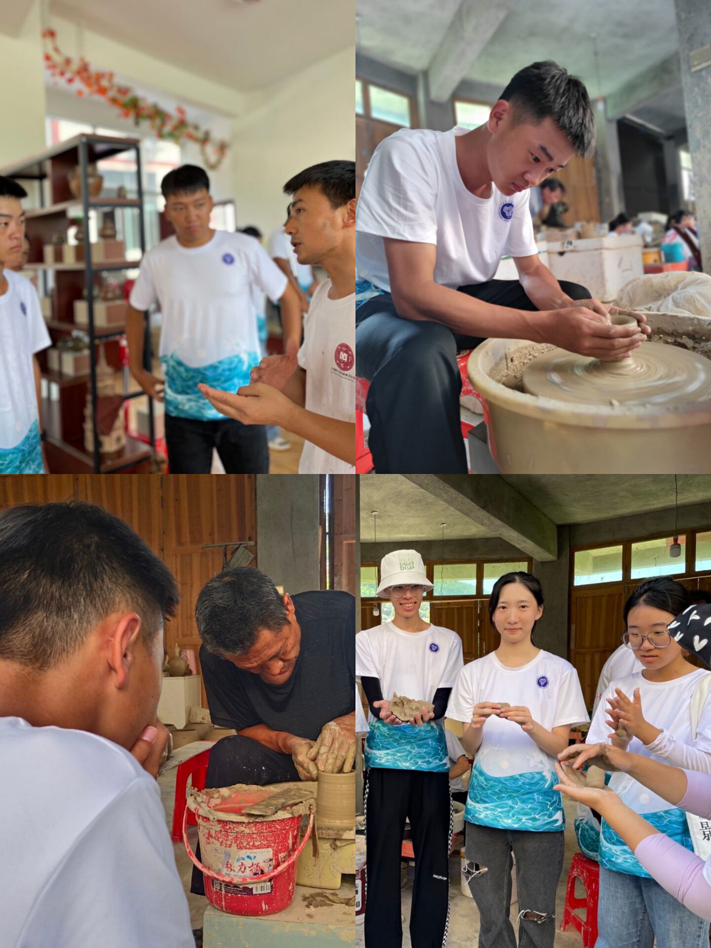 此次“黔行者”队伍来到重庆市黔江区石鸡坨土陶制作工坊参观体验,在第29代传承人刘师傅的介绍中了解到:在乡村振兴中把石鸡坨土陶制作技艺与文化、旅游相结合,由石鸡坨土陶技艺大师对脱贫户进行培训,并将掌握制作技艺的人员招聘到石鸡坨相关企业就业,既帮助脱贫户实现了增收,推动了非遗技艺的传承,又助推了乡村振兴。在了解了土陶的烧制流程和特色工艺后,“黔行者”们还在刘师傅的带领下亲身体验土陶的拉胚塑性过程,在实际行动中感受千年土陶的魅力。