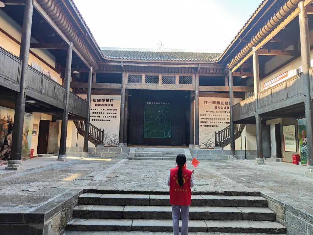 清晨,“壕壕”们迎着朝阳,来到了重庆市綦江区石壕镇红一军团司令部旧址,进行参观和学习,看着这里的一景一物,“壕壕”们心生敬意。綦江红一军团司令部旧址始建于公元1818年,原名禹王宫,距今已有200余年历史,周恩来等曾在此指挥作战,运筹帷幄。在讲解员的带领下,志愿者们看到了陈列着的烟枪、腰带、大刀等,这些都是历史的缩影,直击“壕壕”们的心灵。大家边看边听,陷入沉思,仿佛置身于过往的峥嵘岁月:1935年1月,为保卫遵义会议的顺利召开,红一军团转战綦江,綦江成为了保卫遵义会议的前哨和重要屏障,同时也为四渡赤水制造了重要战机,奏响了四渡赤水的序曲。踏上红一军团司令部旧址,追寻革命历史,“壕壕”们对这段红色历史有了更加清晰的认识,更被先烈们的红军革命精神所感染。