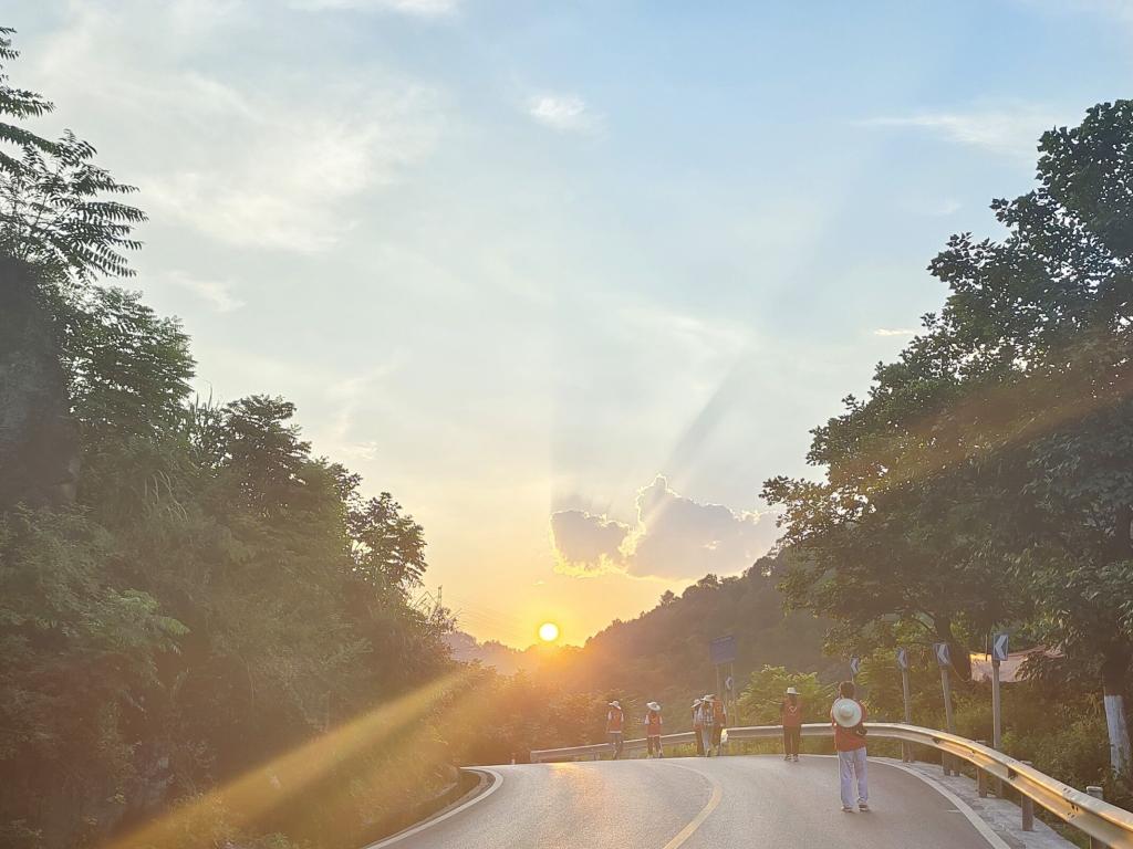 东方欲晓,晨曦微露,志愿团们肩载使命、背负行囊,开始了向岔滩村远足6里的路程。志愿团队员们坚定不移的心,如同太阳坚定地在天空中散发着光芒,真挚而热忱。伴着花香和绿林走在宽阔的乡村道路上,一步一景,志愿者们呼吸着这里的一息一脉,用心感受岔滩村别具一格的乡村气息和乡村文化,体验岔滩村实施乡村振兴战略成效。