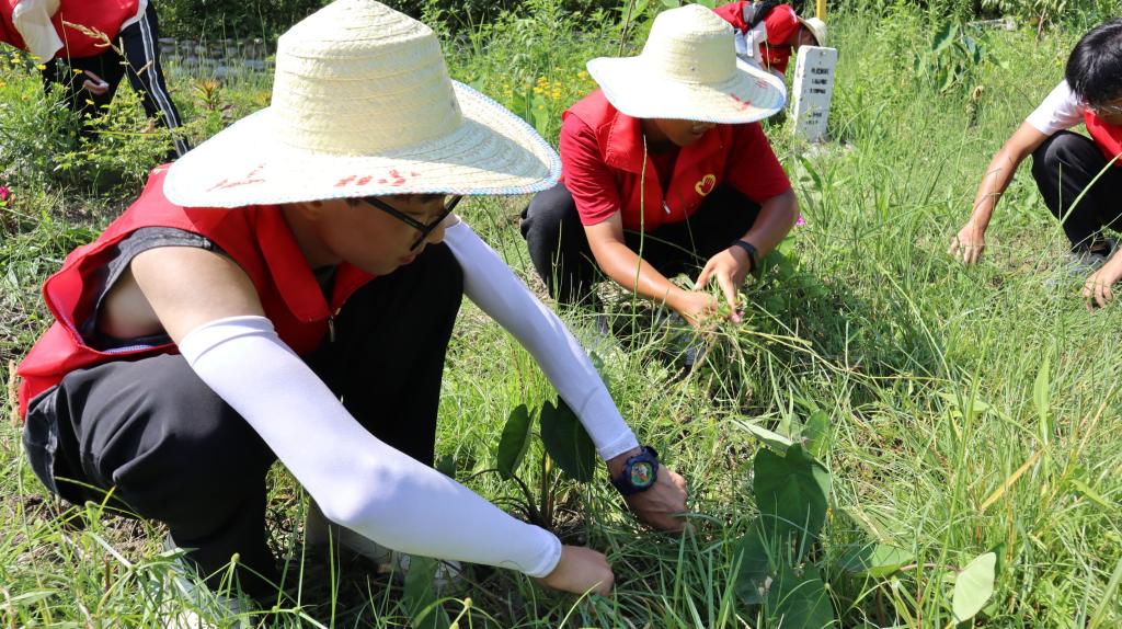 在岔滩村党群服务中心,村委书记王国平热情地接待了志愿团成员们,稍作调整后王书记又为志愿团引路,一同前往赵通坝清除花田里的杂草。烈日悬空汗水浸湿衣衫,大家也不停息手上的动作,依旧仔细地清理杂草。“岔滩村美丽的风景在生态保护中发展,在发展中保护,在“绿富同兴”上下功夫,由此绘就了岔滩村在乡村振兴道路上的新画卷,造就了岔滩村生态产业的潜力和底蕴。”岔滩村党群服务中心工作人员向我们介绍到,“实施乡村振兴战略,不仅仅是一句口号而是要落到实处,我们致力于生态打造和产业链发展,探索生产发展,带动资本、人才等生产要素向乡村汇聚。”