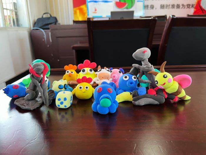 黏土捏捏乐,无限创造力。在通过诗词接龙的活跃气氛后,横山青年们开展了超轻黏土活动,对小朋友们进行一对多的辅导和帮助。设计的图案在小朋友们脑海浮现,色块的搭配让每一份作品更加出彩。粉色波板糖、蓝色Q章鱼、金色小狮子,黏土捏出的形状各异,作品完成度和精美度让人感叹。在美育教育课堂中,创造力的激发是此次活动最大的意义所在,横山青年们以有趣的形式为乡村儿童带去美育教育,也是对乡村文化服务做出的有力实践。