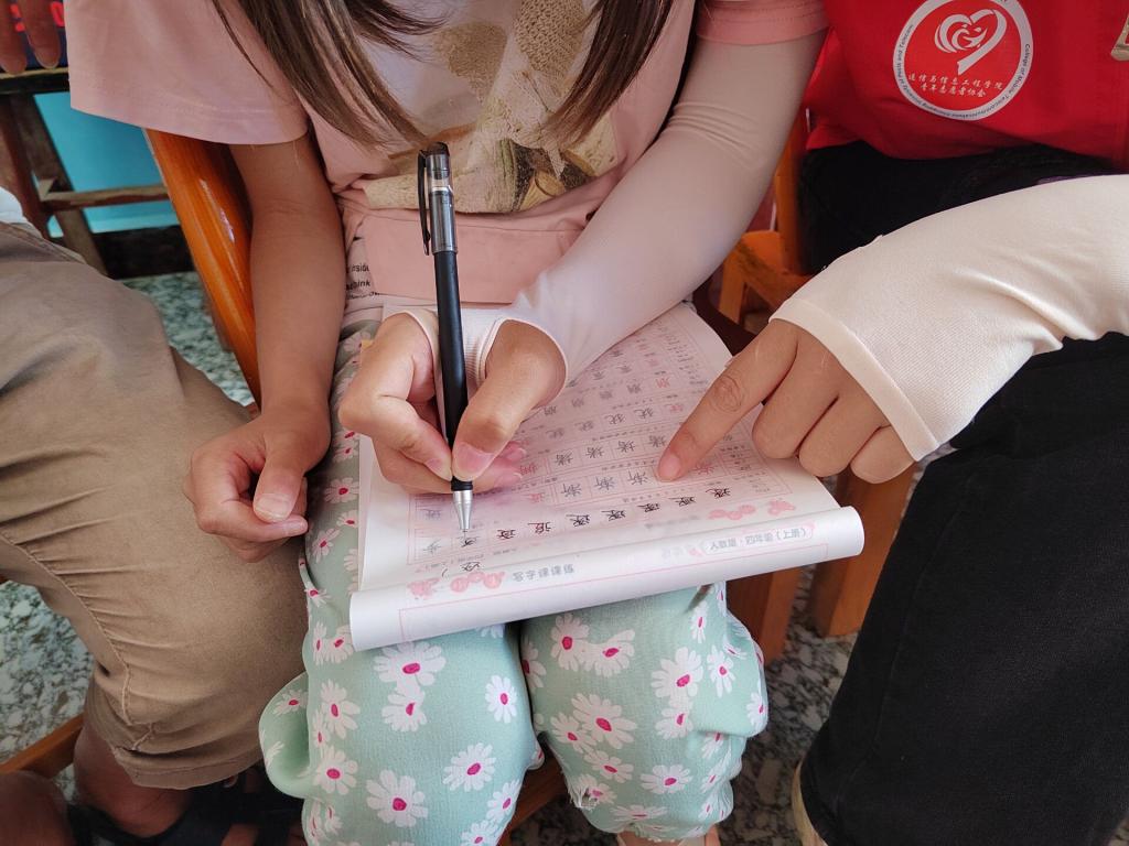 逆水行舟,为梦呐喊。志愿者们还去拜访一个聋哑小女孩的家,志愿者们到达时,她还在认认真真地写着作业,虽然听不到志愿者所说的是什么,但她仍然微笑以对,并刻苦做着作业。志愿者们辅导她完成作业时,她也在旁虚心听着,宋濂求学也不过此。做失败的人很简单,做成功的人却很难,但是奇迹的花朵只会在逆境里绽放,愿她能尽最大的力量去征服逆境,去守望花开,成为她心目中想要达成的样子。
