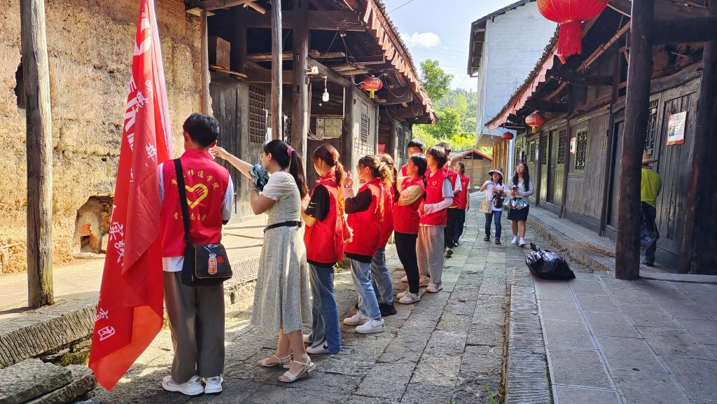 文物是历史的见证者,是前人留给我们的第一手资料。在水市镇文化中心向洪老师的带领下,志愿者们前往水车坪红色革命纪念地,去寻找当年最真实的故事。水车坪老街的特色民族文化、农耕文化、红色文化,红色革命标语鲜红的大字展现着红军精神,红三军在黔江三进马喇湖、攻占黔江城的峥嵘岁月再一次跳跃在我们的视线之中。中国共产党人的红色基因薪火相传,历久弥坚,烈士万涛、宋盘铭、龚昌荣……这些英雄事迹到现在依旧不断激励着大批青年坚定理想信念,为共产主义事业奋斗终身。