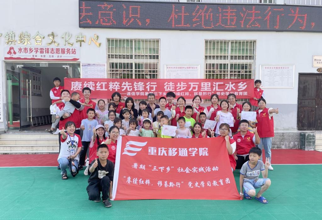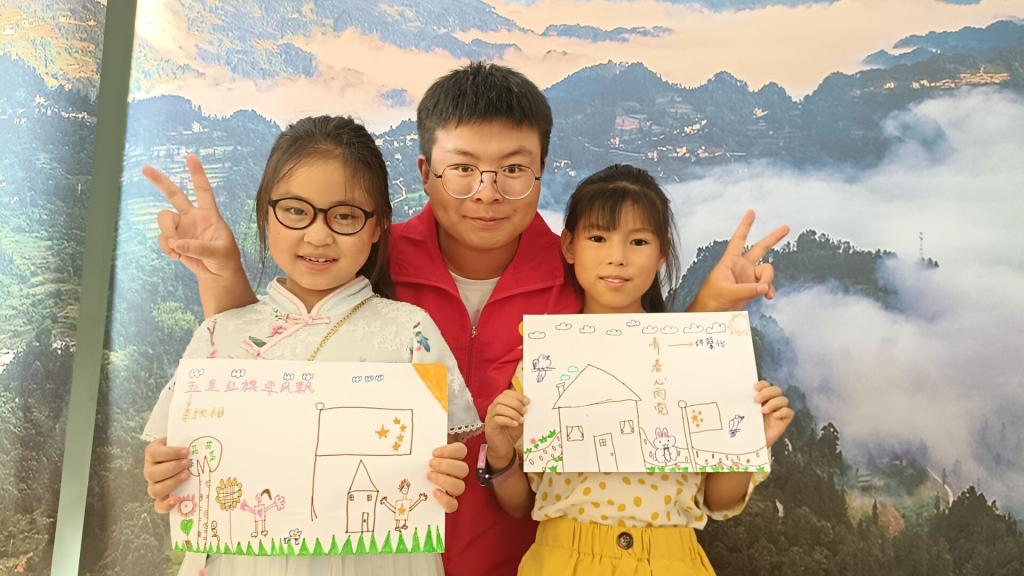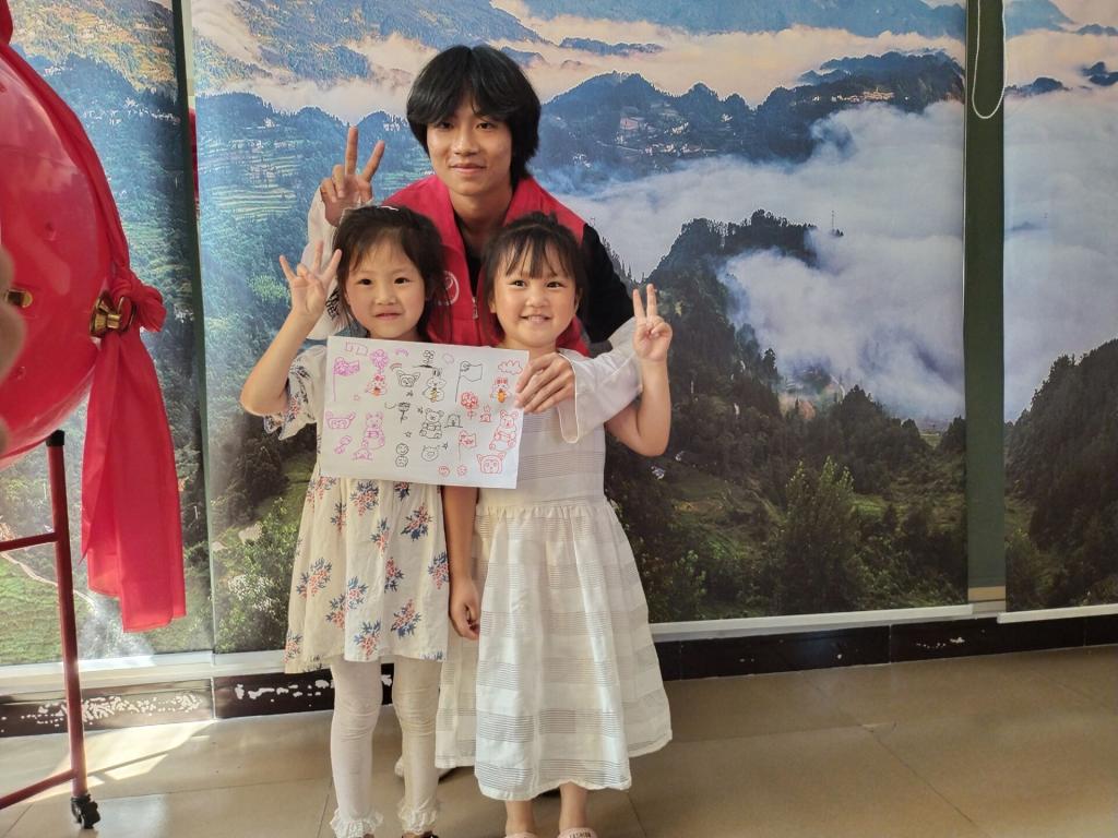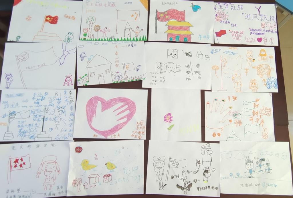 志愿者们带着满满的期待与热血向此次的目的地水市镇水车坪进发。下午2点,大家一起召集当地的孩童,通过画画、唱歌、手语操等形式来宣传当地的红色故事与精神,牢牢把握百年党史的丰富内涵和实践要求,不断深刻领悟中国共产党人精神谱系的构筑与赓续、精髓与实质。用五彩的颜色描绘出大家对党、对国家忠贞不移的爱。一幅幅稚嫩的童画,映照着一张张稚嫩的童脸,彰显着一颗颗对祖国纯真的童心。