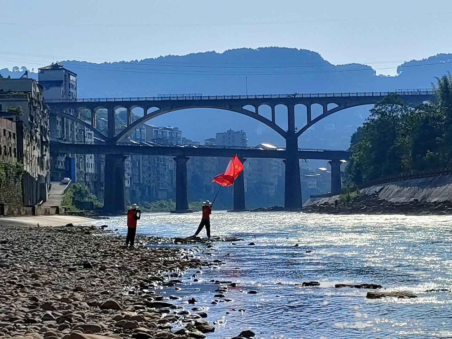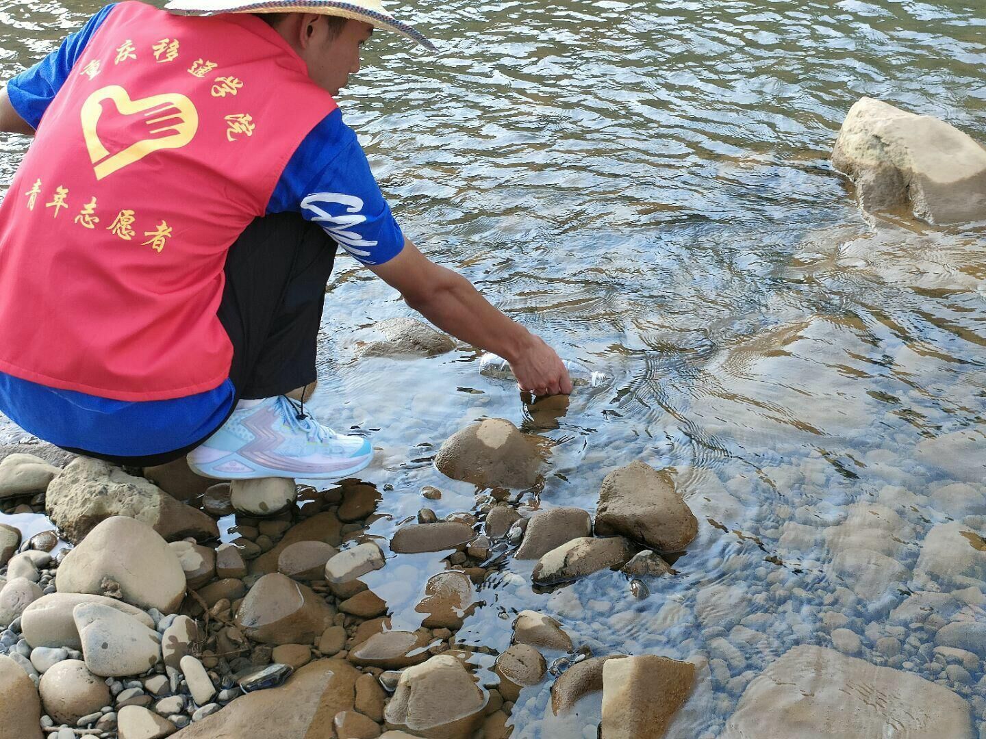 “乡村振兴,乡风文明是保障、生态宜居是关键。”穿过层层树林,走过碧色台阶,志愿者们来到綦江的上游。走在光滑且温热的鹅卵石上,用心去感受碧水蓝天。在“绿水青山就是金山银山”的政策福佑下,河流清澈见底,偶尔见小鱼在水中嬉戏,对岸有一位垂钓老叟,将钓到的鱼重新放入水中,让小镇的“乡气”,焕发农民的“生气”,融入时代的“朝气”。