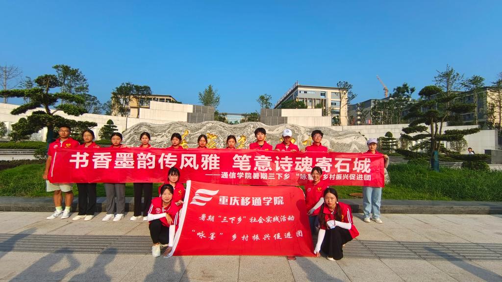 2022年7月6日,由学院15名志愿者和指导老师周俊、胡戈立组成的“咏墨”乡村振兴促进团前往黔江区开展为期五天的暑期“三下乡”社会实践活动。本次团队以“书香墨韵传风雅,笔意诗魂寄石城”为宗旨,以传承中华传统文化,关爱留守儿童为目的,为孩子们开设书法、国学、党史等课程,带领孩子们领略书法艺术的魅力,传播国学经典。